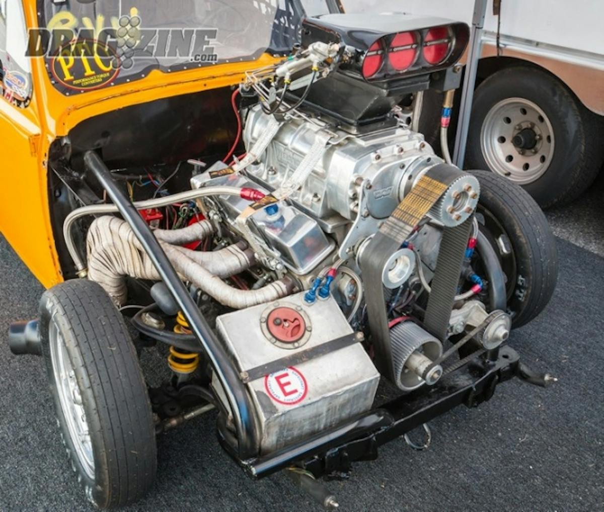 Having a unique race car can mean any number of things–to some it’s having a wild paint job, a one-off engine combination, or a ton of trick parts. And to others, like Ron Clark, it’s about building something that’s one-of-a-kind, from front to rear. What Clark’s done is taken one of the world’s most recognizable and once-popular automobiles, stuffed a blower motor in it, painted it an intense shade of orange, and created one wild looking drag radial car.