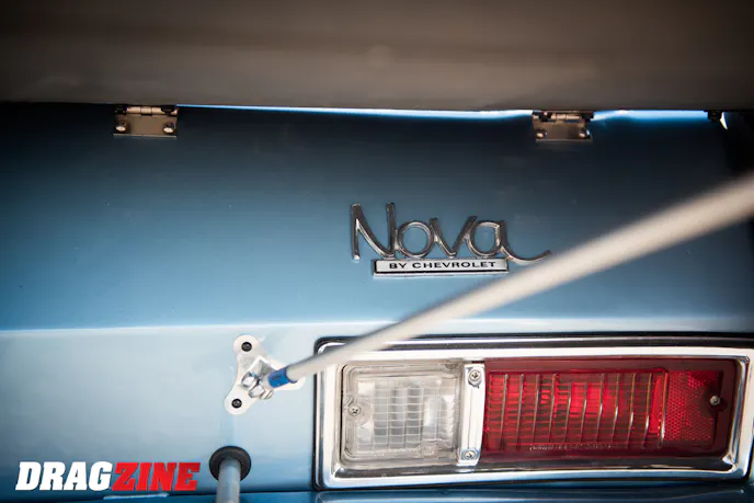 Glacier Blue, an original 1969-era GM color (albeit not on the Nova) was selected by Ryan’s wife — “she said it was a pretty color so I bought it; she had no idea that she had just given me permission to buy a new racecar. I’m still alive thankfully…for now,” he quips.