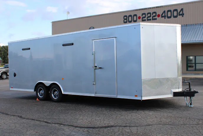 There is a wide 36-inch side door, a .030-inch screwless aluminum exterior, and LED exterior lighting on the outside. This is a solid trailer package full of features for the enthusiast to make highway hauling and race day enjoyable.