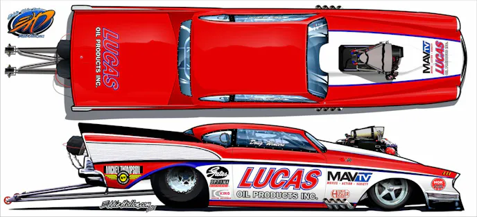 Longtime Pro Modified and Super Chevy Nitro Coupe racer Doug Winters has once again partnered with Lucas Oil for the 2012 racing season, and in the process, has added MAVTV to the mix as a new marketing partner on the Winters Racing ’57 Chevy. Winters’ classic Tri-Five racer will feature a brand paint scheme for the new year, and is currently at the Motorsports Design facility in High Point, North Carolina receiving its coats of red and white paint.