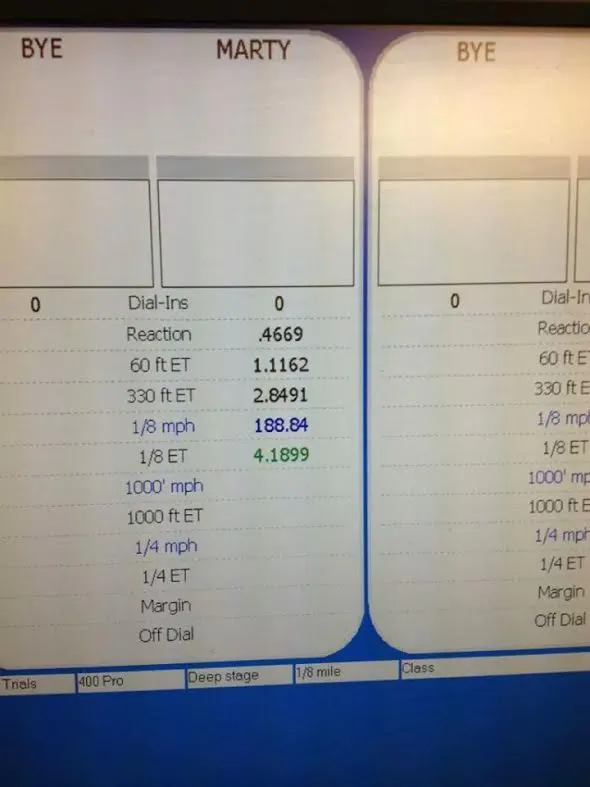 Stinnett’s machine has been in the winner’s circle numerous times over the last few years, but this is a feat we can’t even begin to wrap our heads around – a car running nearly 190 MPH in the eighth-mile on the tiny 275-wide radial is just surreal.