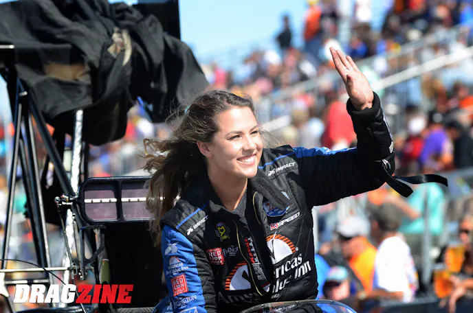 “It’s exciting. I want people to talk. But I’m actually currently working with a Top Fuel team — a championship-tier team who is not competing right now but they have in the past and they’re still involved,” she said, understandably coyly. “So I’ll let everyone kind of think about that. They really want to get back out here, though. We’re working really, really hard. The main goal is to get a two-car team out here, add some more cars to the entry list, and ultimately go for a championship.”