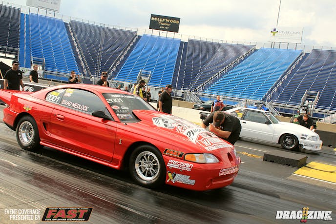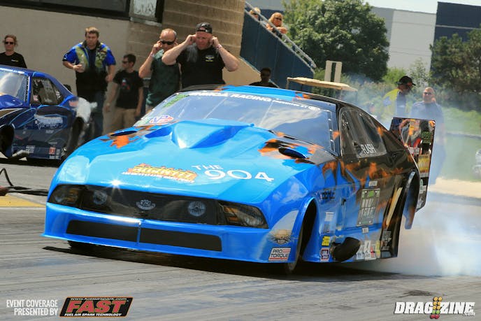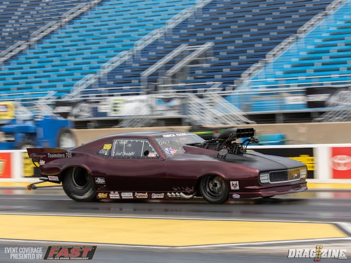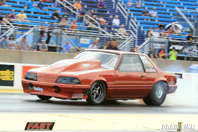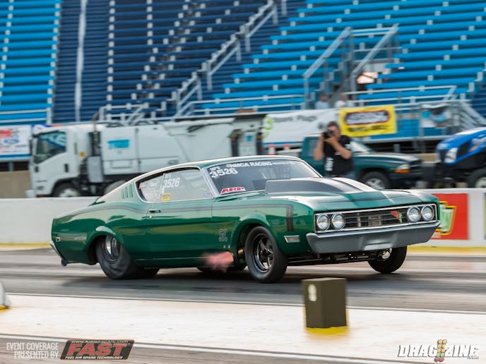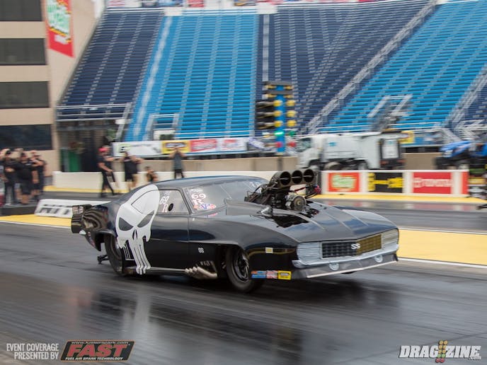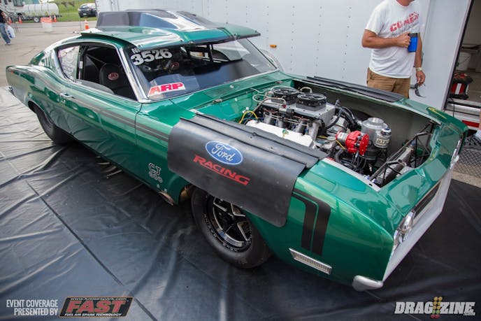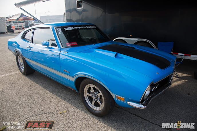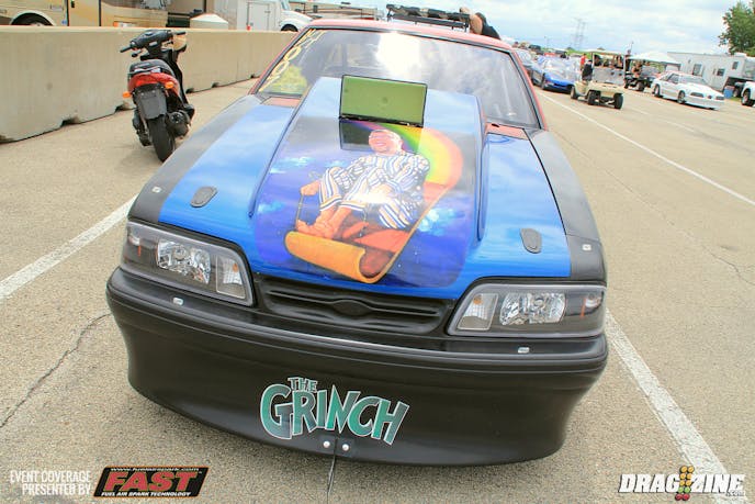 Nitrous Pro Street racer Randy Dolensek's 1969 Mercury Cyclone Spoiler Two could be one of most unique cars on the property this weekend. The car is powered by a 498 cubic inch big block Ford that is huffing a huge hit of nitrous through an EFI system, and is backed by a TH400 transmission. Dolensek is still working through the new car blues trying to figure things out, but has cracked into the seven second zone with this massive car, and is going to round three in Nitrous Pro Street.