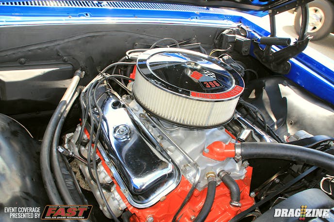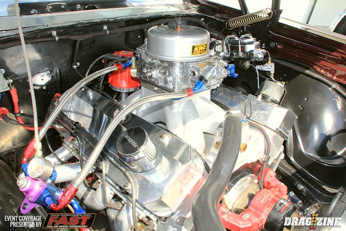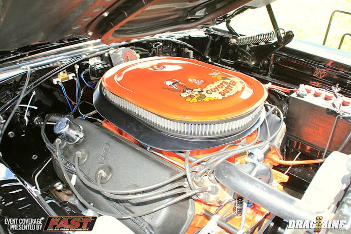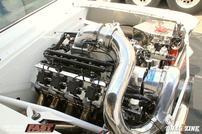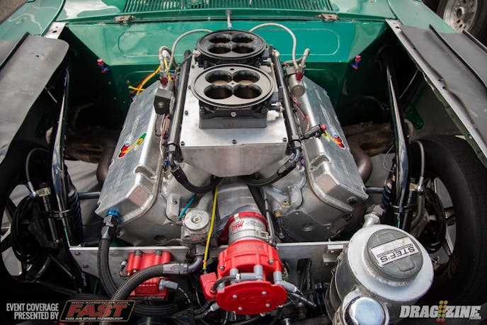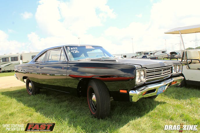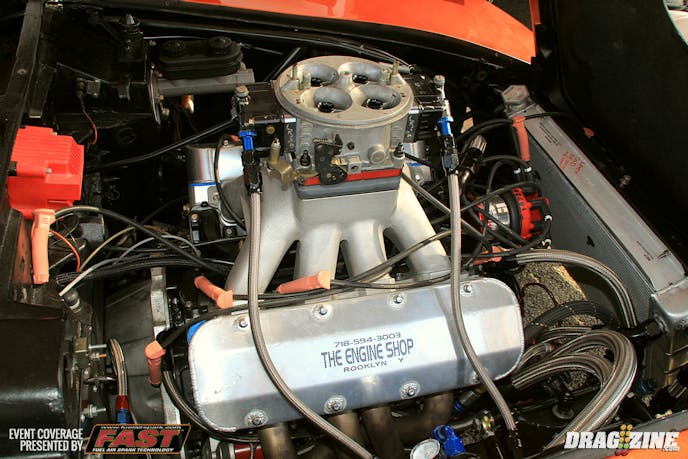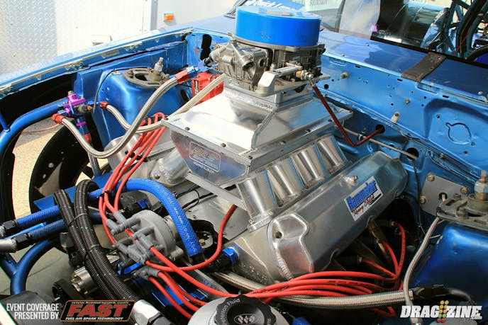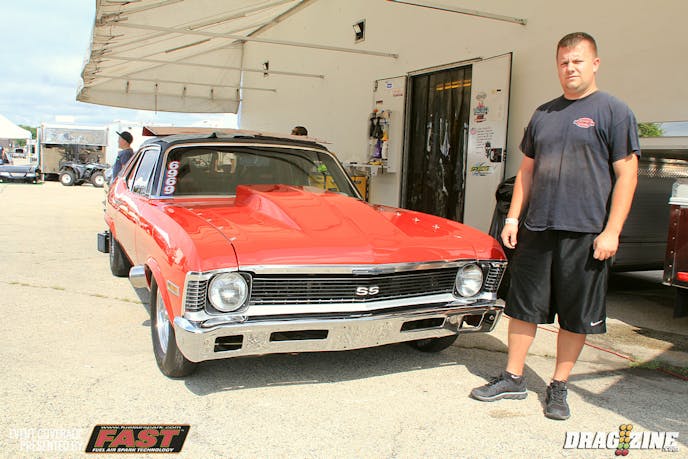 Don Giannone owns this 1966 Chevelle in FAST running a 555 cubic inch mill out of The Engine Shop. Don has been racing this car about ten years in the class and is based out of Lansdale, PA. There are three cars left in eliminations today and he will face off with Dudek's Roadrunner in the next round. Don holds the 60 foot record with a 1.51, an impressive feat on the required tire.
