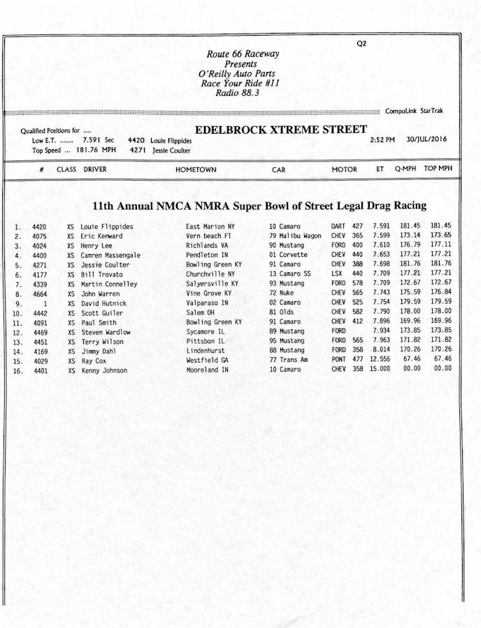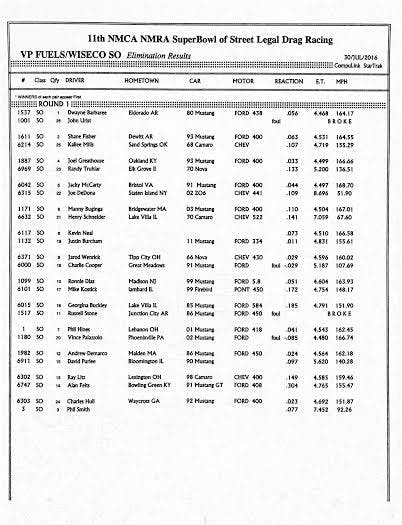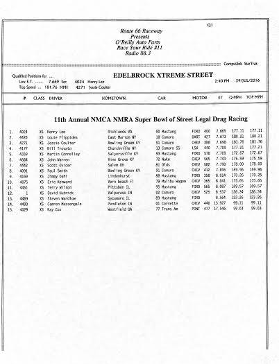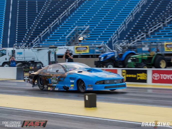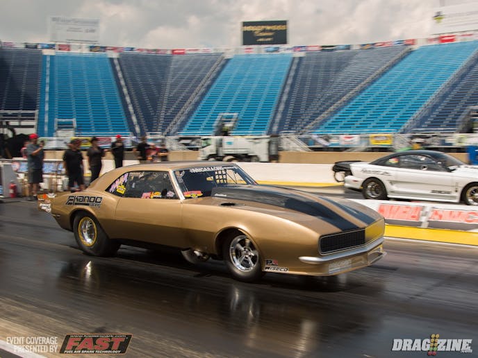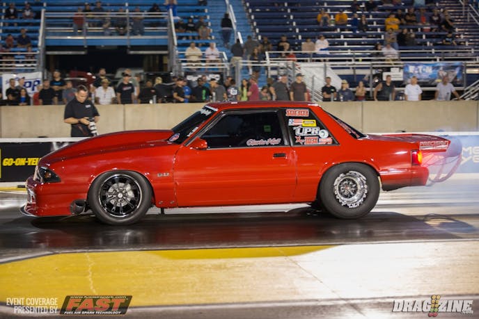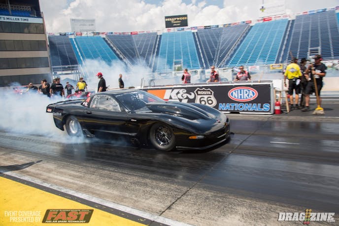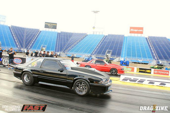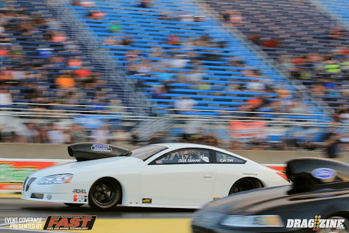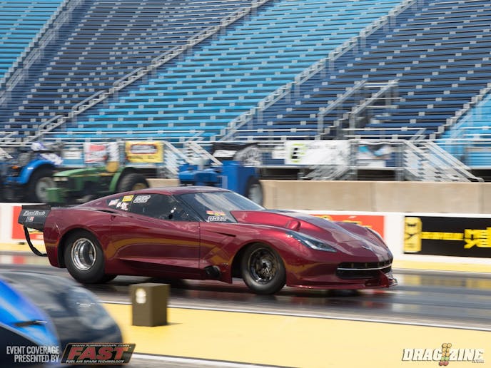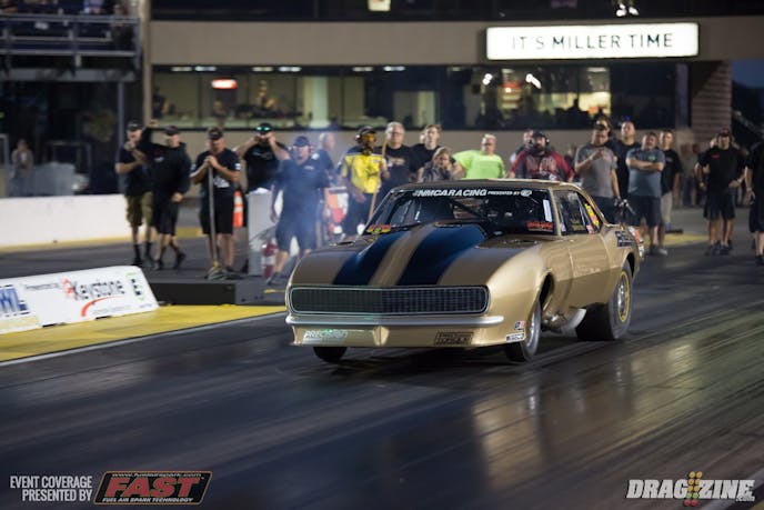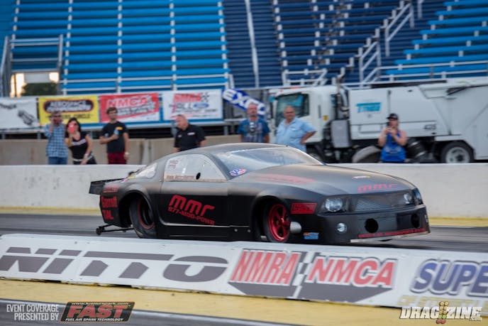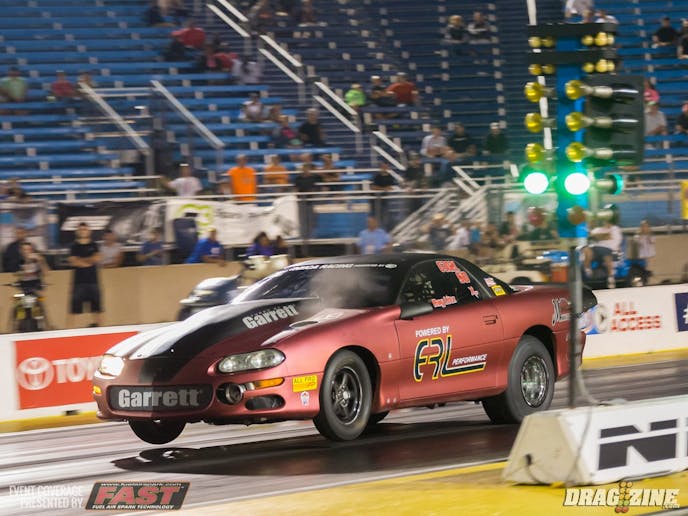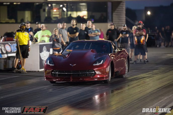 Jesse Coulter normally runs the LS series in Real Street and is here this weekend running Xtreme Street with his third Gen Z28 with power from Brian Tooley. Jesse built the car himself in his shop Jesse's Garage. He is partnered with his friend Rick Ball from RC Components who is well known in motorcycle circles and is a wheel, brake rotor and exhaust parts manufacturer now entering the automotive racing wheel market with this being the debut event for the wheels. He run an RPM transmission and Pro Torque converter. Tony “The Sandman” Williams earned a win in round one with his best pass of the weekend running a 4.08 at 185 mphGreg Seth-Hunter has one of the more interesting Pro Mod combos at this event with a MMR mod motor under the hood of his Mustang. Seth-Hunter ran a 4.07 at 185 to pick up the win, and move on to round two on Sunday.Kevin Fiscus overcame some transmission issues from Q3 to pull off the biggest upset of the round taking out number one qualifier Randy Adler running a crisp 3.85 at 207.Jordan Pennington moves on to round two in Factory Super Car with a 8.58 at 159 hit in round one.Chuck Watson picked up over his best run in qualifying ripping off a 8.45 to move on to round two of Factory Super CarJeff Rudolf was having problems all weekend in Nitrous Pro Street and was finally able to pull it all together in round one to take out the number three qualifier with a 7.48 at 184.After a lot of adjustments in the pits Keith Berry was able to keep the nose down on his Corvette and rip off a 4.03 in round one of Radial Wars action.Points leader DeWayne Mills kept his title hopes alive in Radial Wars running a 3.96 at 198 to defeat Greg Powrie in round one.Rob Valden set low ET of the round behind the wheel of Andrew Alepa’s C7 Corvette in round one of Radial Wars. The team is looking to make some big moves on Sunday to push towards an event victory.Ray Litz defeated Alan Felts in the first round of Street Outlaw running a new personal best of 4.58. This is Litz’s first season in Street Outlaw and the car is starting to show some serious promise to be a player in the class.Number one qualifier Dwayne Barbaree had a bye in round one when John Urist could not make the call. Barbaree set low ET for the round ripping off a booming 4.46.Charles Hull finally was able to get a handle on his new combo running a 4.69 to take out number three qualifier Phil Smith in round one of Street Outlaw.