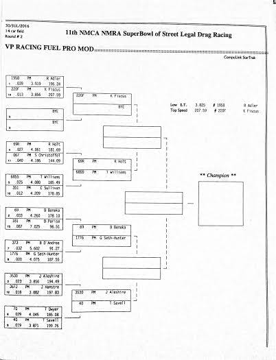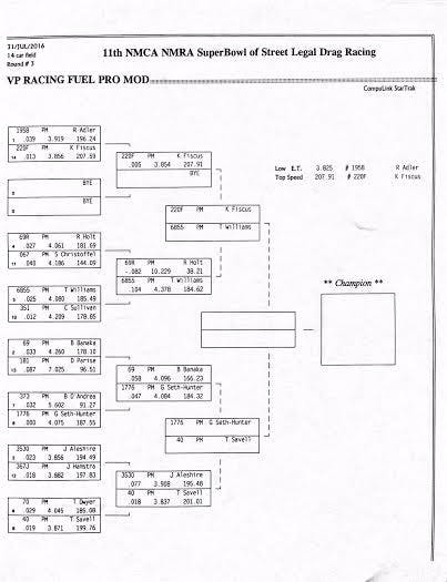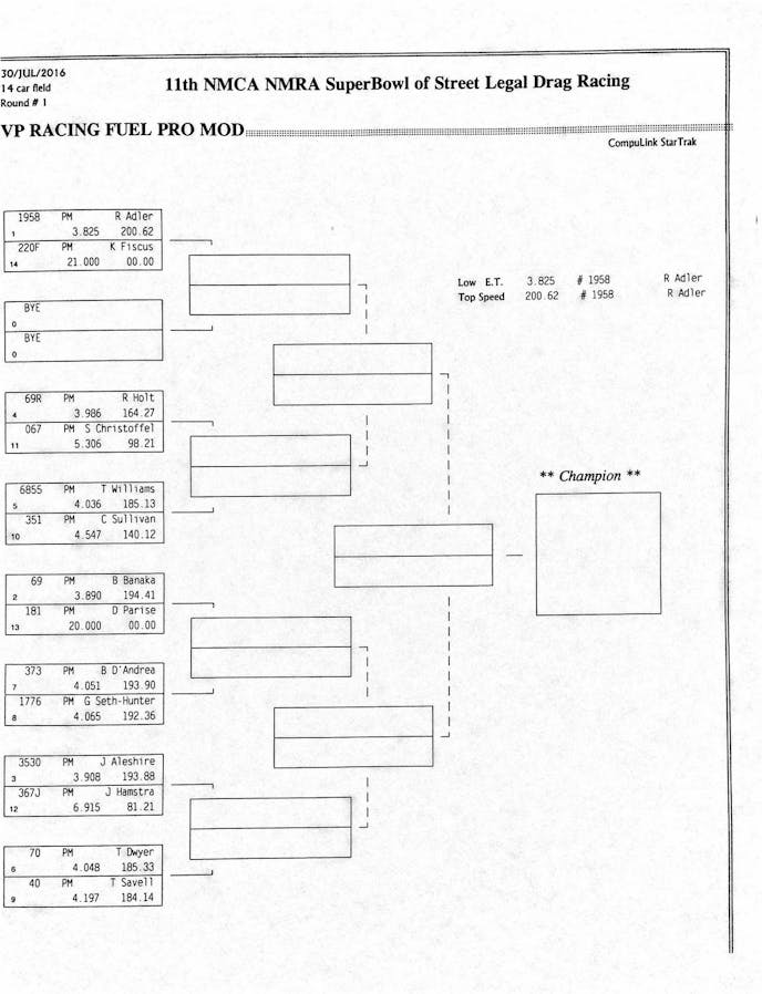 The Pro Mod final is set with Kevin Fiscus taking the win over Tony Williams setting up a nitrous vs turbo, Ford Vs Chevy match. Fiscus will have lane choice against Tim Savelle in the Pat Musi powered Camaro.