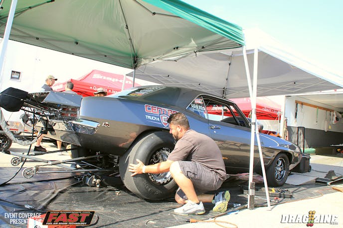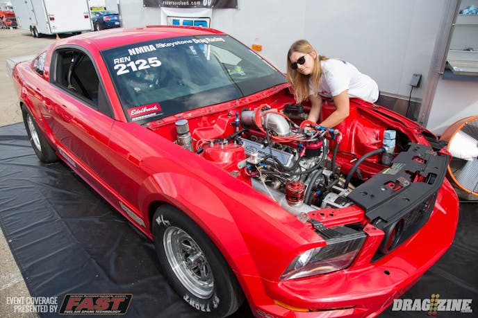 NA 10.5 driver Dwight Ausmus gets his 1972 Pontiac Firebird ready for round 2 today. Ausmus knows how finicky these all motor monsters can be when it comes to track conditions, so he has both a hot track, along with a cloud-covered track tune-up on tap.NMRA Renegade racer Valerie Clements in her SBF F1A ProCharger powered 2005 Mustang has been creeping up on the tune with her new EGT sensors and it has paid off. The car went 7.60 with a 4.80 1/8th mile time, a new personal best for her. She racers her brother Alton Clements in round two who just went a 7.65