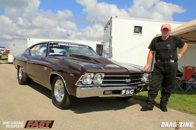 This beautiful 1969 Chevelle caught our eye running in Open Comp and is owned by Donny Edmunds based out of Franklin, Ohio. The car is powered by a big block Chevy displacing 565 inches topped with Dart CNC heads and Dart Big M block built by Greg Robinson at Robinson Racing Engines with TRZ rear suspension and Global West control arms up front. The 12 bolt rear is filled with Strange internals and a Richmond 4.11 pro gears. The car runs consistent 6.0's in the eighth and 9.40's out the back at 141 MPH.