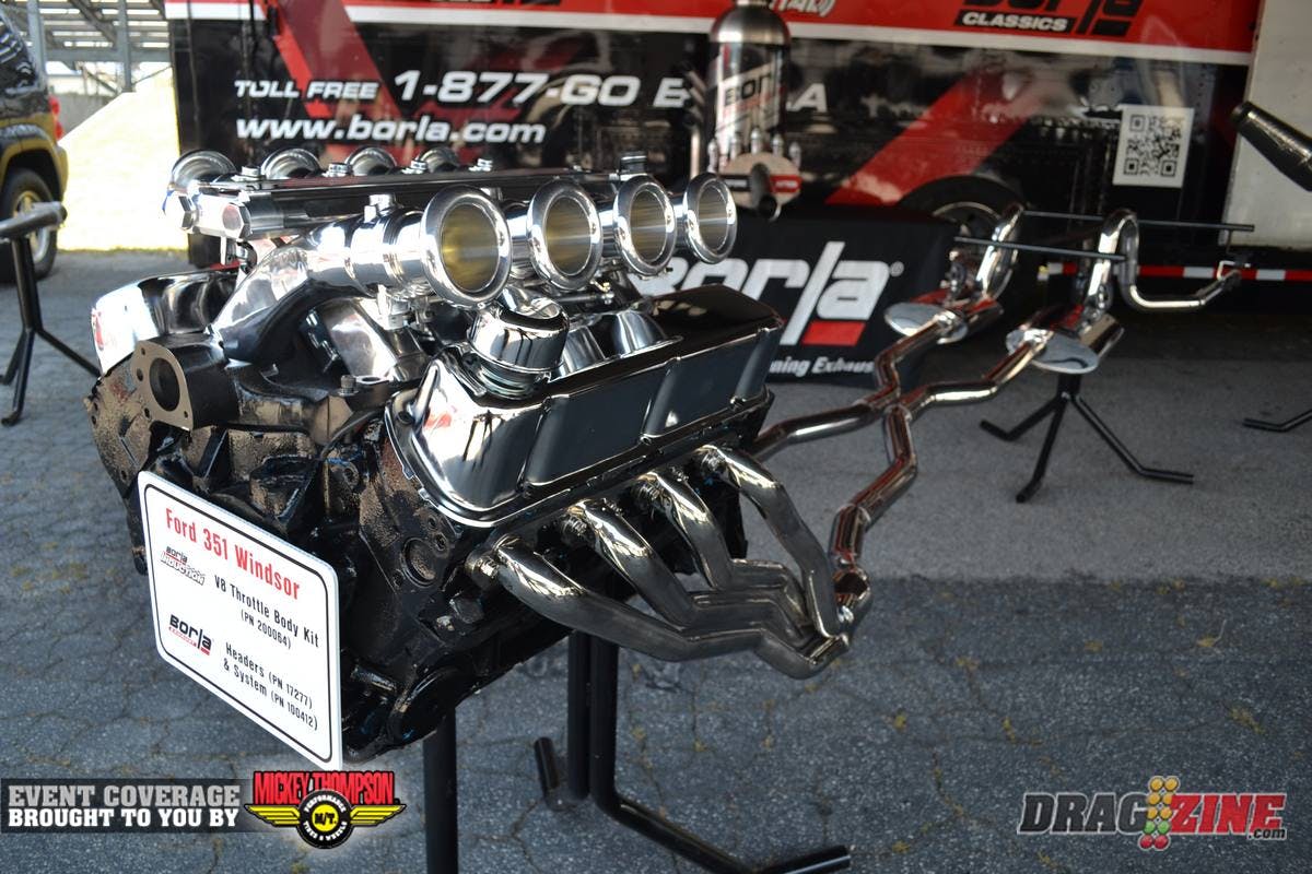 Borla is here this weekend showcasing their stainless exhaust as well as a new line of induction systems available for several engine types. Tracie Percell got me up to speed on the new line. Borla Performance Industries purchased TWM Induction about two and a half years ago and moved that into the Borla facility in Johnson City, Tennessee. The systems are available in cast or billet with several styles available, shown is a cross ram for a 351 Winsdor.