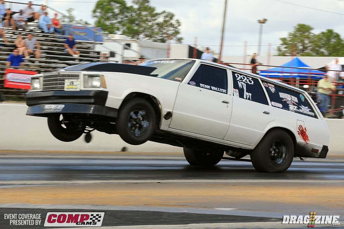 Dean Vallese had trouble keeping the front end of the Zombie wagon on the ground today and was unable to make the sixteen car field.