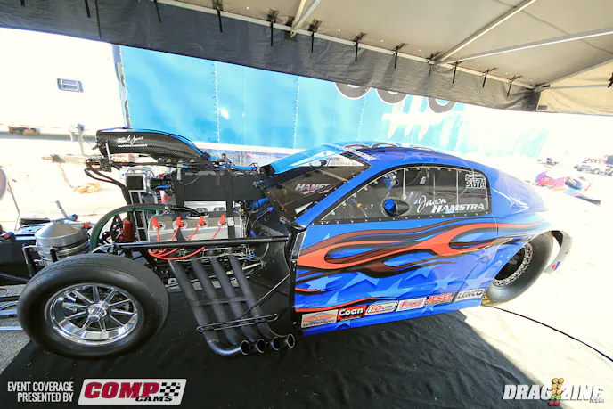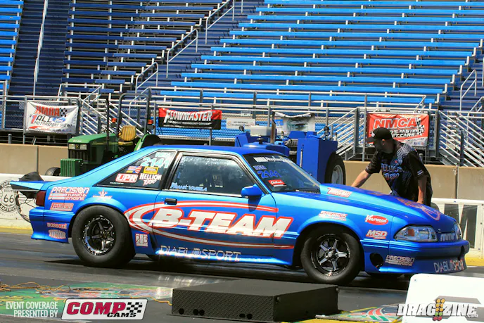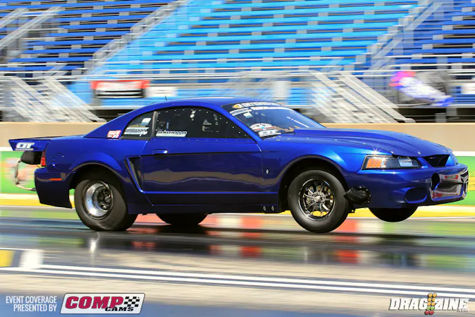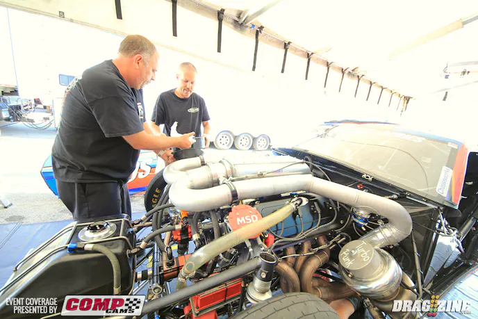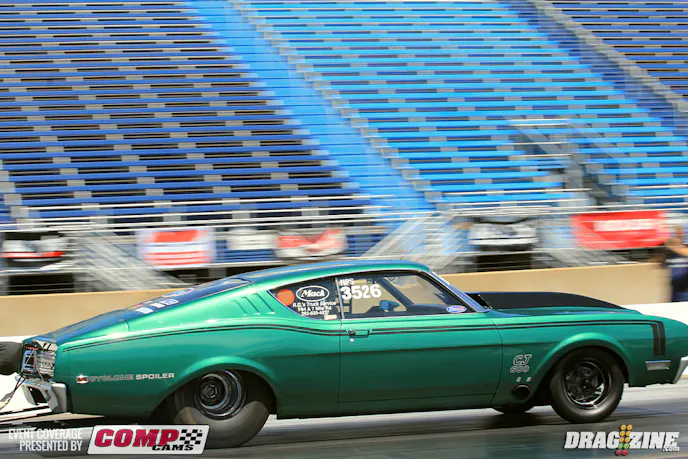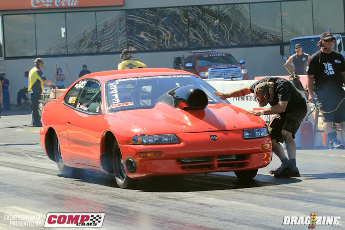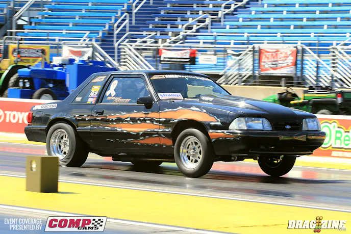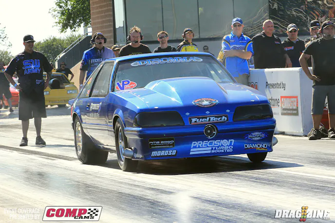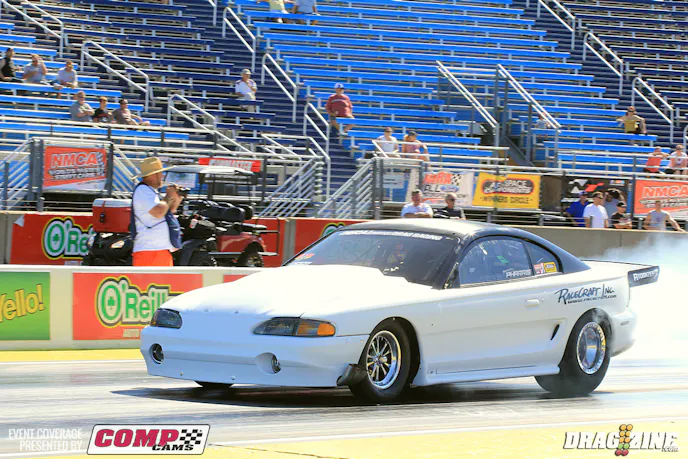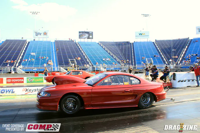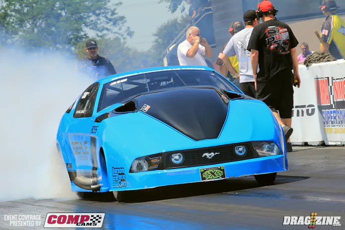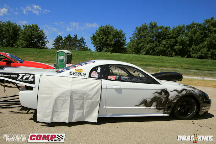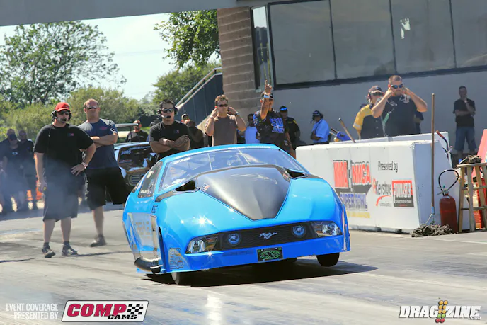 John Kauderer runs this Cobra Jet in Procharger Coyote Modified sporting the number 5 from last years points. Kauderer is a former Open Comp racer and is still working on getting the full potential from this combo which features a swap from blower to a Hellion Turbo system with a class spec 68MM Precision turbo. Sponsors include UDMC Racing and CFO Solutions Plus and Blow By Racing.