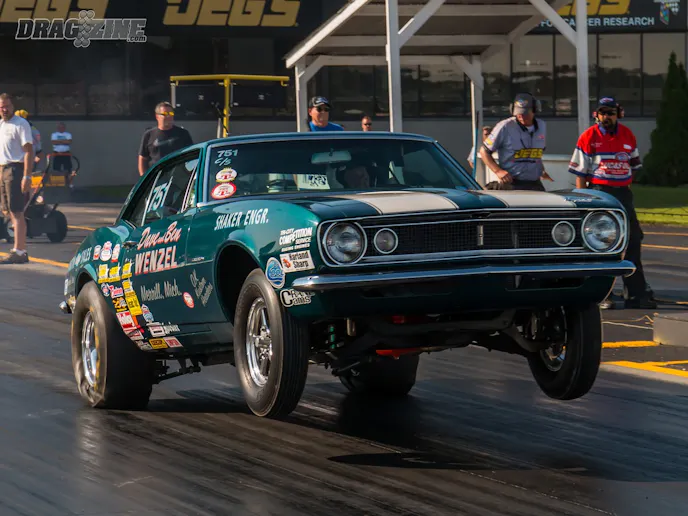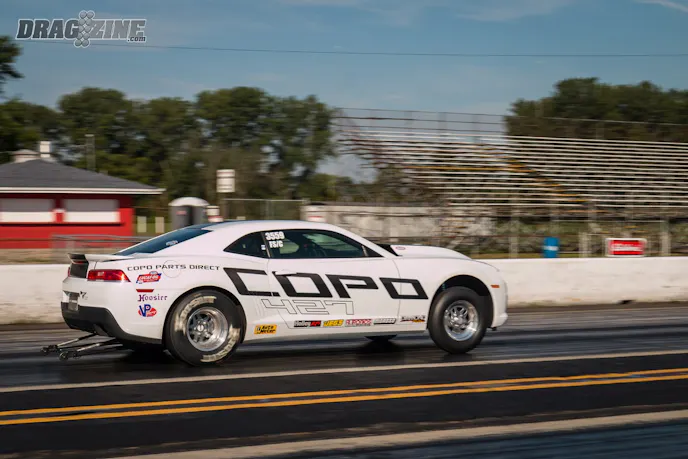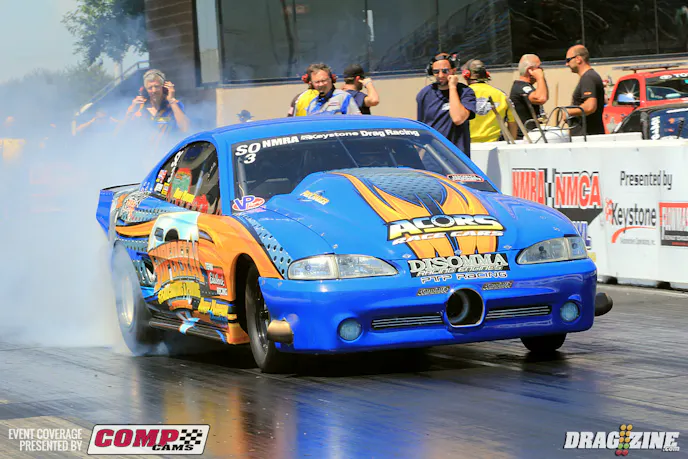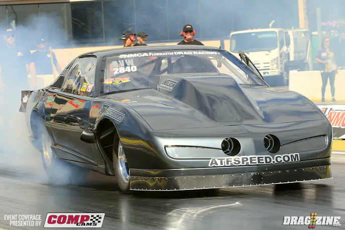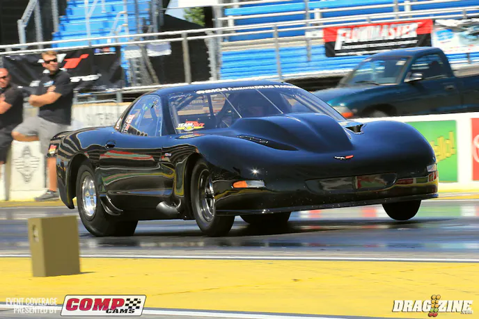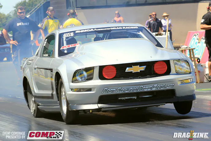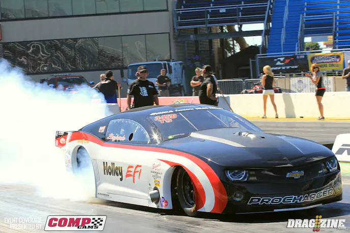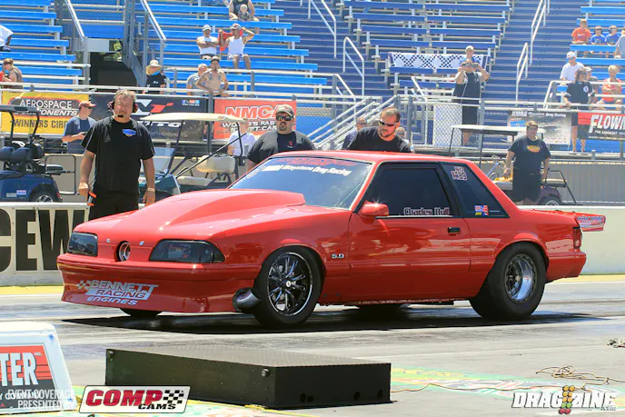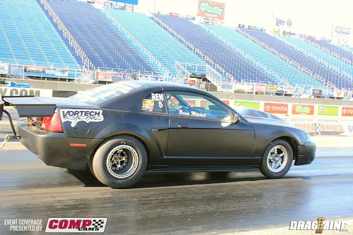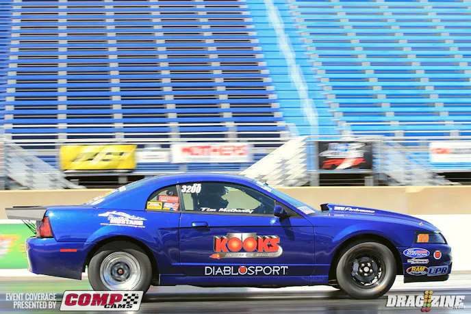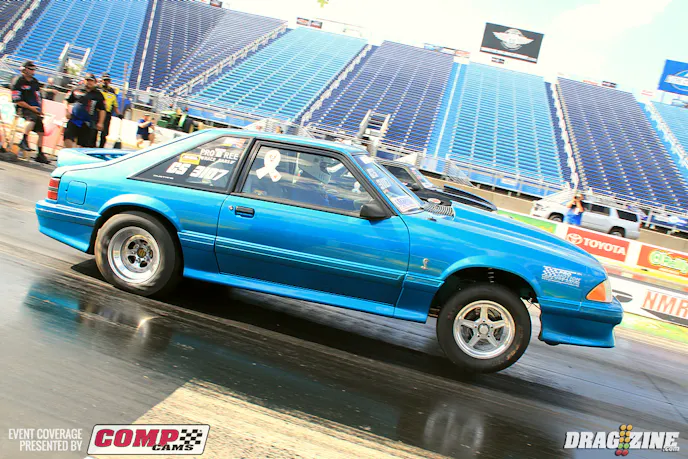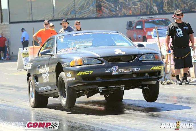 John Kauderer runs this Cobra Jet in Procharger Coyote Modified sporting the number 5 from last years points. Kauderer is a former Open Comp racer and is still working on getting the full potential from this combo which features a swap from blower to a Hellion Turbo system with a class spec 68MM Precision turbo. Sponsors include UDMC Racing and CFO Solutions Plus and Blow By Racing.