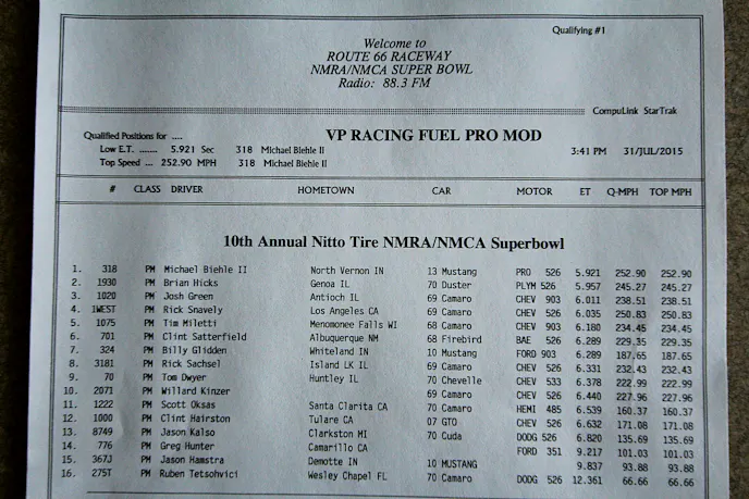 We are into round two of eliminations in the 2015 NMCA/NMRA Superbowl in Joliet today with stiff competition going into round two. Stay tuned to Dragzine for the latest news from Route 66 Raceway brought to you from the fine folks at Comp Cams.