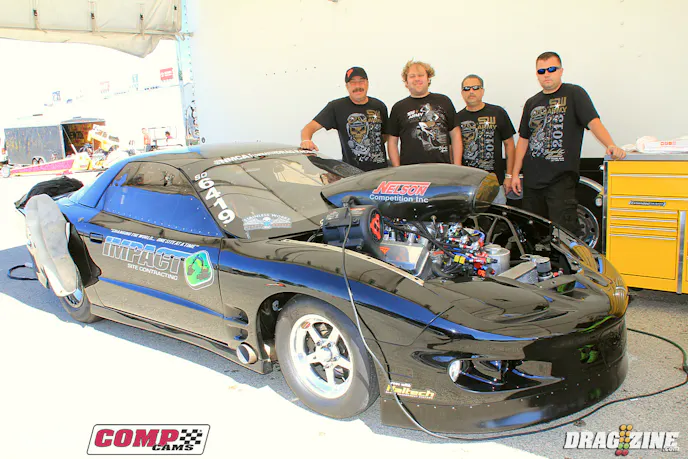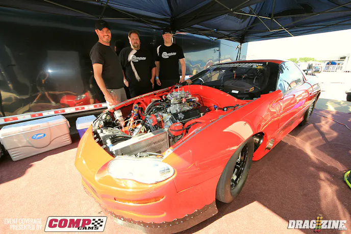 We stopped by RPMS Racing to chat with Billy Adams and Phil “Corndog” Smith who advanced over Justin Burcham last night with a 4.58 making Smith the quickest nitrous car in VP Fuels/Stainless Works Street Outlaw. The team has used Nelson Competition for years and this engine is a 598 cubic inch big Chevy with three systems of Speedtech nitrous for 2015. The crew from left to right, Phil Smith, Phil jr, Mike Sticca and Randy Truhlar.