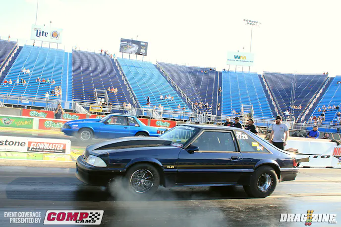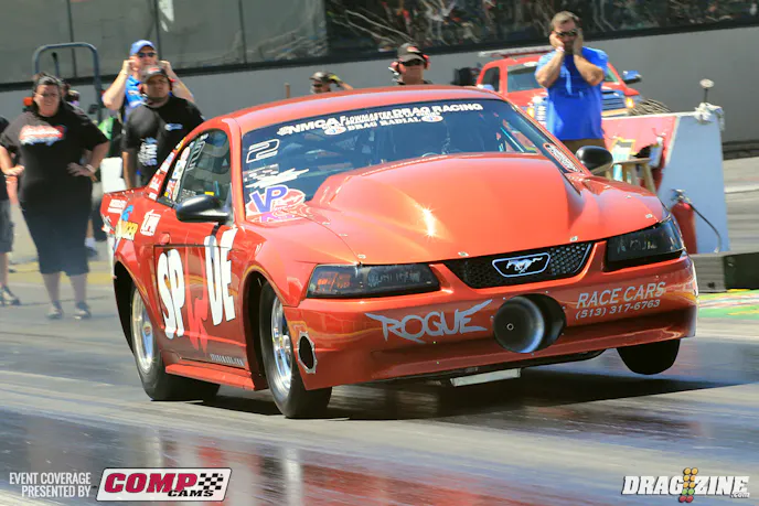 Matt Amrine took top honors in American Racing Headers Factory Stock qualifying with a 10.78 at 115 MPH and a wheels up launch for the Batavia, Ohio based racer and 2014 class champion.Winder, Georgia racer Tim Matherly is running Strange Coyote Stock with his 2003 Cobra and landed fifth in class running a 10.47 at 129.12 MPH earning top MPH in qualifying.Drew Lyons (far lane) took top qualifier in Strange Coyote Stock running a 10.39 at 128 MPH.