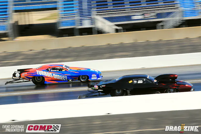 ACT Pure Street winner Jimmy Wilson took on Xtreme Street winner David Hutnick who was number one qualifier, won his make up race from Bowling Green, this event and yes, the Super Bowl too, earning the “quadfecta” for the Straightline Performance team running a 7.73 on his 7.66 target after Wilson bogged down after the launch. Next up was Don Baskin, Nostalgia Pro Street winner against Haley James from Coyote Modified. James ran right on her index taking the win with an 8.31 and more points for team NMRA. NA 10.5 winner Leonard Long faced off with James Meredith who won Factory Stock with Long taking that round for NMCA running an 8.00 at 171 to Meredith’s 10.94.