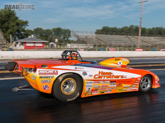 Johnny Lightning turned his number one qualifying position into a final round appearance in Procharger Coyote Modified with Haley James who held the number two spot. James would have lane choice going into the final after defeating Joe Cram with an 8.32 at 163 MPH after gettign beat on the tree by .030 while Johnny had an earned by and took the tree and drove down easy to save parts. When the lights came down it was Johnny out first with an .016 reaction with James just .012 behind. At the stripe it would be Haley James there first with her 8.39 at 162 to earn the win over Johnny Lightning's game but off pace 8.46 at 163. Leonard Long and Dwight Ausmus were the final pair left in Quick Lane Toms River NA 10.5. Long took the tree first forcing Ausmus to play catch up if he could. It was a very close match with Long edging out Ausmus’ Pontiac with an 8.05 to an 8.07.Louie Filippides did his job in the final of Edelbrock Xtreme Street winning the reaction time battle and running a 7.80 at 177 MPH, David Hutnick had other ideas running a 7.75 at 179 to earn the win.Rich Bruder and Eric Gustafson were the last pair standing in Street Outlaw today with both racers having a near equal chance at a win. At the hit Gustafson stuck the tires hard getting in his own oil and Bruder going right down to take the win over the California based Gustafson.Drew Lyons earned number one qualifier and waded through his side of the ladder to meet with number three man Darrin Hendricks to make an all Indiana final round. It was a good start for both racers with each driver making clean passes in the match. Lyons would earn the win in a close race running low ET for the weekend with a 10.462 at 127.78 to Handricks’ hard charging 10.482 at 128.66.