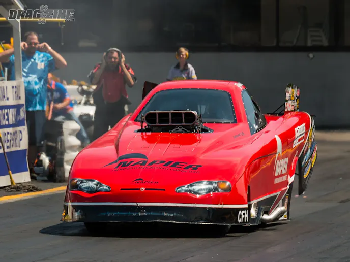 In round two Pro Mod action this morning Josh Green met with Rick Snavely who took the starting line advantage. Snavely slowed to a 6.07 at just 139 allowing Green to sneak by around the thousand foot cone and earn the round win with a 6.03 at 237.Billy Glidden and Steve Summers faced off with Glidden doing his job on the tree but backfiring past the eighth mile. Summers drove by for his best run this weekend 5.84 at 256 MPH.