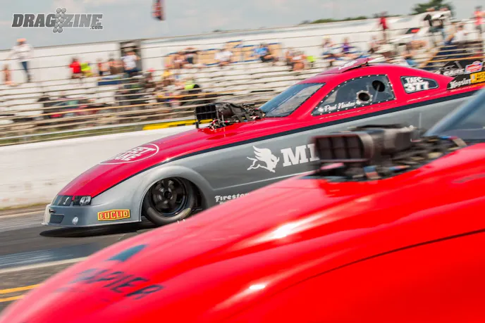 Johnny Lightning turned his number one qualifying position into a final round appearance in Procharger Coyote Modified with Haley James who held the number two spot. James would have lane choice going into the final after defeating Joe Cram with an 8.32 at 163 MPH after gettign beat on the tree by .030 while Johnny had an earned by and took the tree and drove down easy to save parts. When the lights came down it was Johnny out first with an .016 reaction with James just .012 behind. At the stripe it would be Haley James there first with her 8.39 at 162 to earn the win over Johnny Lightning's game but off pace 8.46 at 163. Leonard Long and Dwight Ausmus were the final pair left in Quick Lane Toms River NA 10.5. Long took the tree first forcing Ausmus to play catch up if he could. It was a very close match with Long edging out Ausmus’ Pontiac with an 8.05 to an 8.07.Louie Filippides did his job in the final of Edelbrock Xtreme Street winning the reaction time battle and running a 7.80 at 177 MPH, David Hutnick had other ideas running a 7.75 at 179 to earn the win.Rich Bruder and Eric Gustafson were the last pair standing in Street Outlaw today with both racers having a near equal chance at a win. At the hit Gustafson stuck the tires hard getting in his own oil and Bruder going right down to take the win over the California based Gustafson.Drew Lyons earned number one qualifier and waded through his side of the ladder to meet with number three man Darrin Hendricks to make an all Indiana final round. It was a good start for both racers with each driver making clean passes in the match. Lyons would earn the win in a close race running low ET for the weekend with a 10.462 at 127.78 to Handricks’ hard charging 10.482 at 128.66.