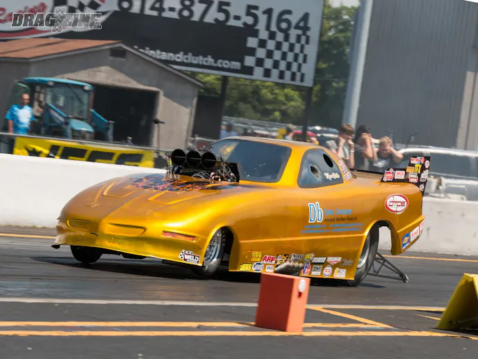 Michael Beihle II earned number one qualifier after the first qualifying session of VP Racing Fuels Pro Mod running a 5.921 at 252.90 for the North Vernon, Indiana based racer.Brian Hicks was the only other racer in the 5’s this session running a 5.957 at 245.27 in his 1970 Duster.Andy Vogt qualified his 1990 ARP Nostalgia Pro Street Trans Am with a 7.43 at 187 to top the eleven car field so far.Jill Hicks is part of the two car team this weekend with her husband Brian in Pro Mod. She also qualified second in her class putting up a 6.46 at 185 with herself and Vogt the only cars in the 6.4 zone so far today.Benjamin Board hails from Overland Park, Kansas and is running E3 Spark Plugs Top Sportsman inhis Holley EFI sponsored Procharged 2013 Camaro. His 6.49 at 213 MPH black was good for top qualifier by a good margin this session.In Mickey Thompson Radial Wars Frank Meshaw earned top qualifier in a tight match with Keith Berry. Berry took the win light but that doesn’t count in qualifying, at least not in the first round today as we have some rounds from Bowling Green to complete. Meshaw put up a 4.285 at 188 to Berry’s 4.299 at 180 which put him in third position.Daniel Pharris is attending his first NMCA event in Radial Wars landing second in class after this session with a 4.297 at 189.84 earning top MPH on the run.Stainless Works Street Outlaw has a whopping 27 cars in class this weekend with Manhatton Beach, California’s Eric Gustafson leading the field with a 4.47 at 165. The increased count is due in part to the NMCA decision to shorten Street Outlaw to an eighth mile class allowing X275 cars to cross over with a minimal amount of changes. Rob Goss, Jared Johnston, Phil Smith and Phil Hines round out the top five.The Bruder Brothers are always a force to be reckoned with and Rich sits in sixth with a 4.66 at 163 MPH and is one of several X275 racers here this weekend.John Warren put his 1970 Nova on the pole in Edelbrock Xtreme Street running a 7.78 at 178. Tony Alm took top MPH this session.Dwight Ausmus put hit pure Pontiac on the top in Quick Lane Tom’s River NA 10.5 with a 7.98 at 171 MPH blast this afternoon.Brandon Alsept (far lane) and Steve Gifford launch hard in Coyote Stock qualifying with Gifford earning the better position landing fourth in the fifteen car field with a 10.47 at 128 MPH. Gifford uses BES power in the Finish Line Performance LLC sponsored ride.Glen Pushis (far lane) earned top spot in SDPC Chevy Performance Stock with a 10.43 at 127 MPH in a match with Heath Shemwell.Ronnie Hackelton landed second in class with his 2013 COPO running a 10.44 at 126.