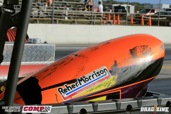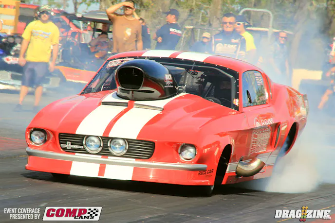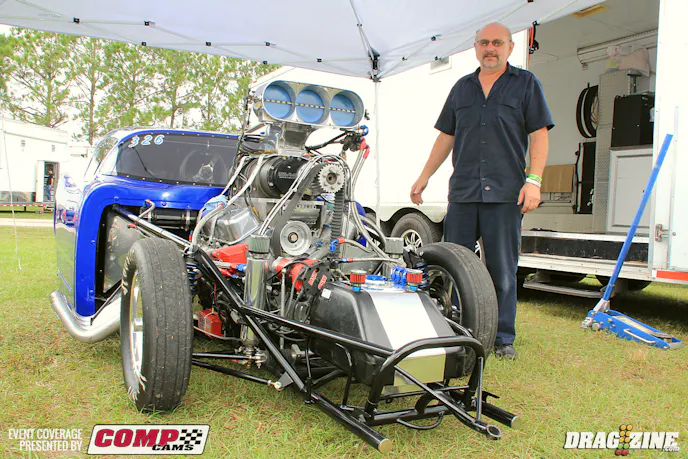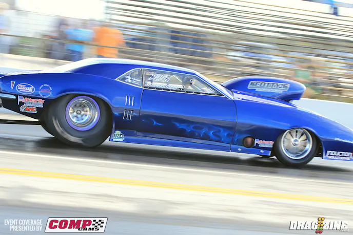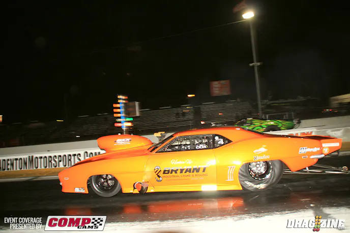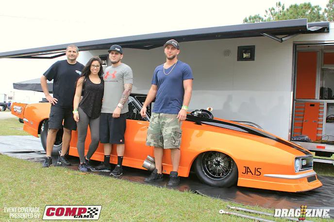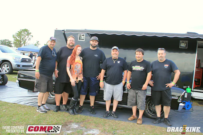 Gen Musto is based just north of Toronto, Canada running Outlaw Pro Mod this weekend with a new car purchased last year from Art Hodges built by Jerry Haas. This is the second outing for the team who is here shaking the car down in the Florida weather. The Nelson Competition engine was destined for his small tire Trans Am but is seeing duty here to get the car set up while the new 960 cubic inch bullet is being built b