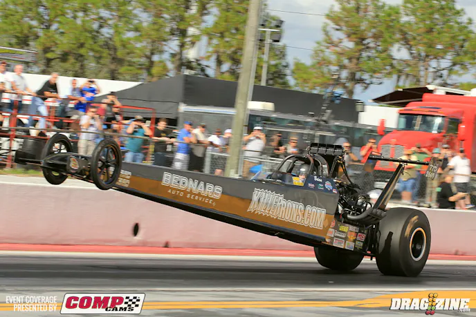 Welcome to day two of the 2015 Snowbird Outlaw Nationals. We have some great weather today with the blustery overcast weather well past up it’s time for some sunshine and good track conditions with surface temp about 80 degrees for round one qualifying. Stay tuned for same day updates from Bradenton all weekend. A special thanks to the team at Comp Cams, whose support makes our coverage here at Dragzine possible!