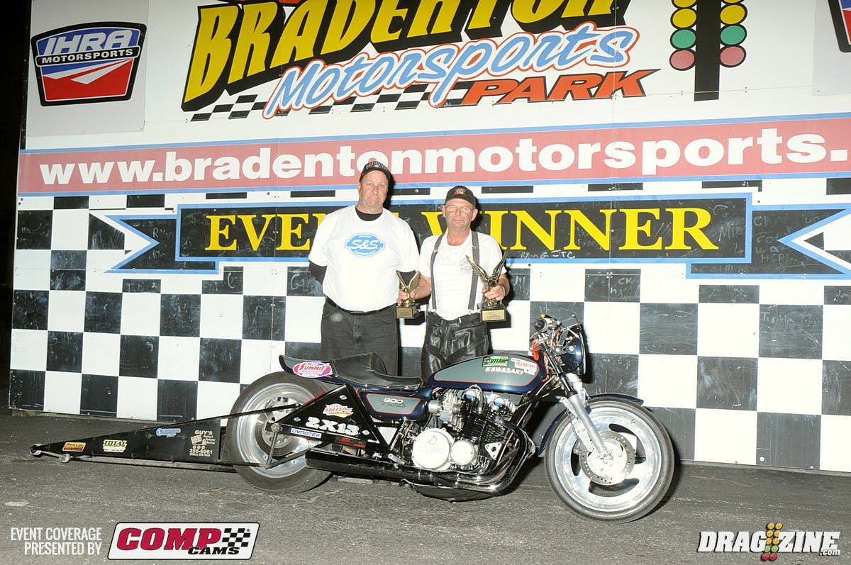 Travis Harvey faced off with Chris Patrick in the Outlaw Pro Mod Final taking the tree and the win with a 3.81 at 196 as Patrick slowed to a 4.18 at 134.Phil Esz faced off with Aryan Rochon in the Open Outlaw final round laying down a 3.64 at 202 earning the event win over local racer Aryan Rochon who put up a 3.78 at 194.Mike Stavrinos made it through the B field in Outlaw Pro Mod to meet up with Rick Hord’s Pontiac in a battle of twin turbo cars. Hord took a big starting line advantage with a .073 reaction going to to earn the hole shot win with a 4.05 at 189 to Stavrinos’ 3.94 at 196 MPH blast, his best run of the weekend in just the second time out with the car.Kevin Fiscus faced off with Bill Futch in TRZ Motorsports Pro Drag Radial final putting up a 4.05 at 189 to earn the event win.Bill Futch – TRZ Motorsports Pro Drag Radial runner up.Ken Quartuccio and Jason Juday met up in the final of Induction Solutions Outlaw 632. Both cars had been running well today with Quartuccio having lane choice by virtue of MPH as both racers ran idnetical ET’s in the semi finals. Juday knocked the tree down with a .004 reaction but lost a cylinder near the stripe killing some MPH. Both racers stepped it up for the final running weekend bests. A 4.426 for Quartuccio and a 4.462 for Juday with Quartuccio earnign the event win.The Fast Forward/Innovative Racecraft Ultra Street final was on fire with Troy Pirez Jr. meeting Joe Albrecht and both cars riding wheelies out. Pires was up hight and forced to pedal the car to bring it down slowing to a 5.02 at 142. Albrecht was .004 on the tree and out front taking the win with a 4.911 at 144 MPH.Robert Bjorkman based out of Ft Meyers, Florida faced off with Glen Scaggs in 5.50 Index final going .004 on the tree and scoring the win with a 5.524 at 116 scrubbing MPH off to Scaggs’ .066 5.513 at 124.5.50 Index Runner Up – Glen Scaggs.James Stover has been on a roll lately scoring several final round appearances near the end of the season. He put an .022 light on Joe Tillman for a sizable advantage. At the stripe he forced Tillman’s hand running a 7.514 as Tillman went under index with a 7.493.7.50 Index Runner Up – Joe Tillman.In a very close race Matt Marcus met with R.J. Myers in the final of 6.50 Index going .017 to Myers .022. At the stripe it would be Marcus’ 6.512 to Myers 6.515 with Marcus earnign the event win.6.50 Index runner Up – R.J. Myers.7.90 Index Jr. Dragster Winner – Michael Carpenter.7.90 Index Jr Dragster Runner Up – Kyle Anderson.8.90 Index jr. Dragster Winner – Travis Logan.Super Pro Winner – Alan GlattSuper Pro Runner Up – Mark Smullen.Sportsman Winner – Joe Tillman.Sportsman Runner Up – Max Nuebler IIIPro Cycle Winner – Candy Hagadorn.Pro Cycle Runner Up – Luc David.