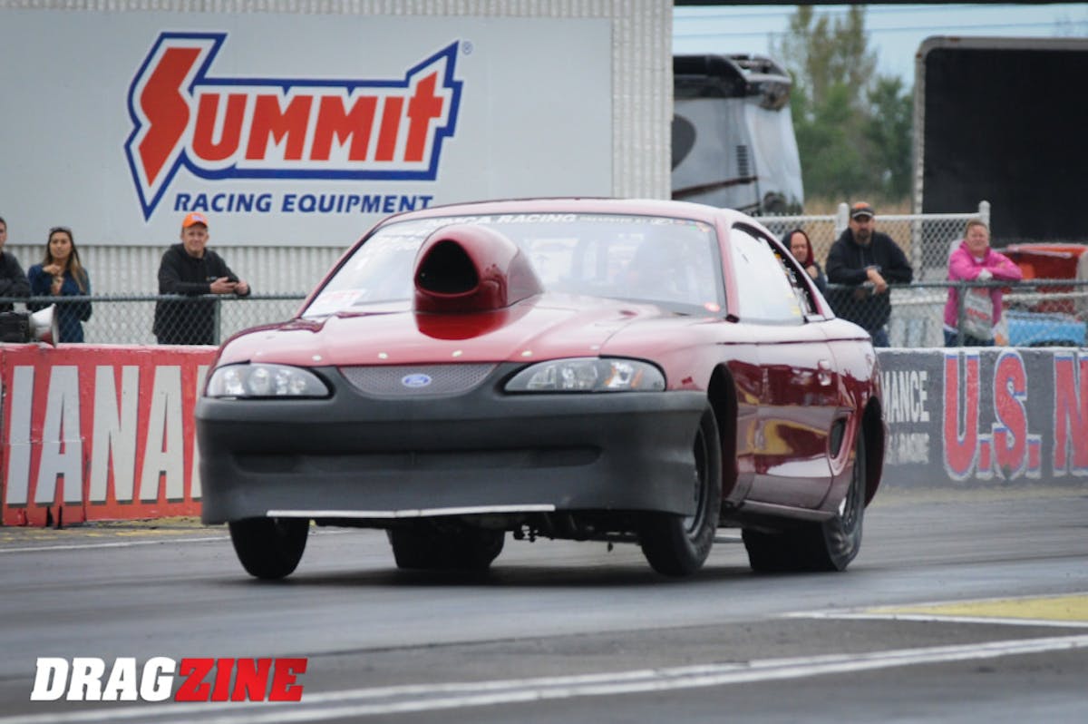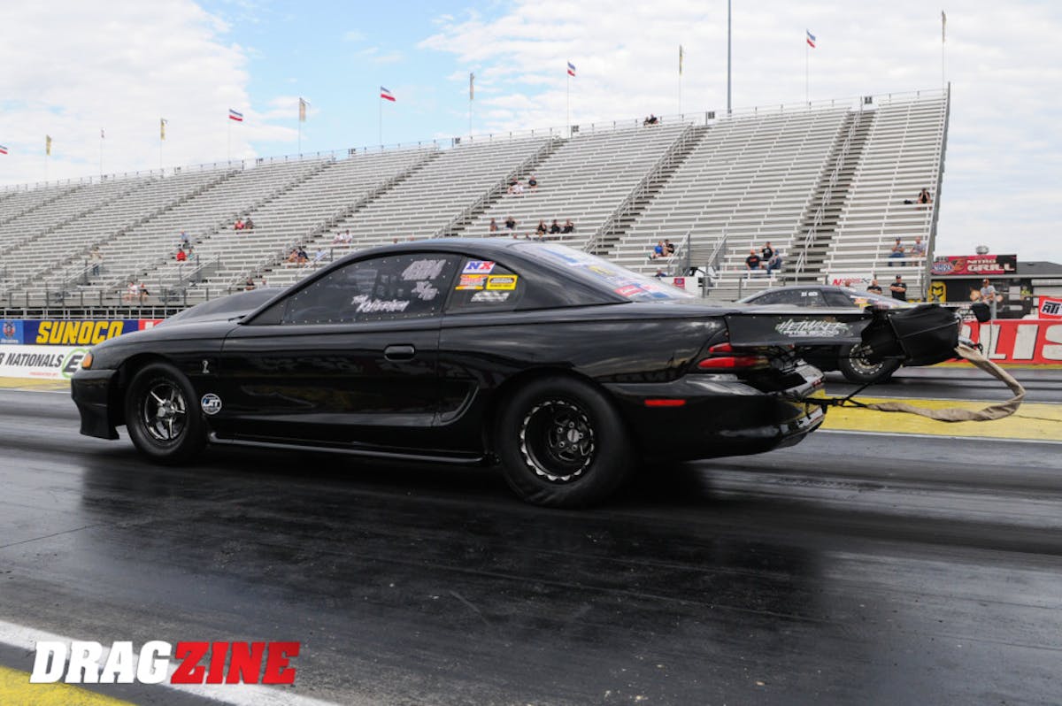 Daniel Pharris drove his sleek 1995 Ford Mustang Cobra to the top spot on a quick day of Street Outlaw qualifying, as he outpaced Shawn Ayers and Rob Goss with the only ‘twenty’ — a 4.281 at 173.09 mph in the third and final session. Shawn Ayers, well on his way into the 20s in the final session before slowing, closed out qualifying second at 4.30, with Friday’s leader, Rob Goss, third at 4.32.