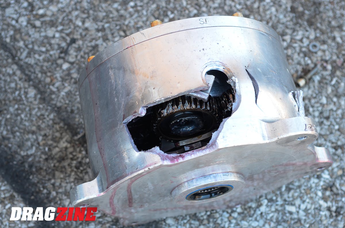 Near mid-track, as Stanley was pulling away from opponent Billy Harper and the car shifted into second gear, the planetary assembly broke, causing a brief deceleration on the in-car G-meter and a spike in engine rpm. Father and tuner Camp Stanley believes whatever broke ‘caught’, causing the car to regain forward acceleration before one of the planetary gears let go and exited the case at 3.65-seconds, rocketing across John’s field of view in the cockpit and through the lexan windshield. John, stunned by what he had just seen, quickly brought the car to a halt in the shutdown area and climbed from the car, unhurt.