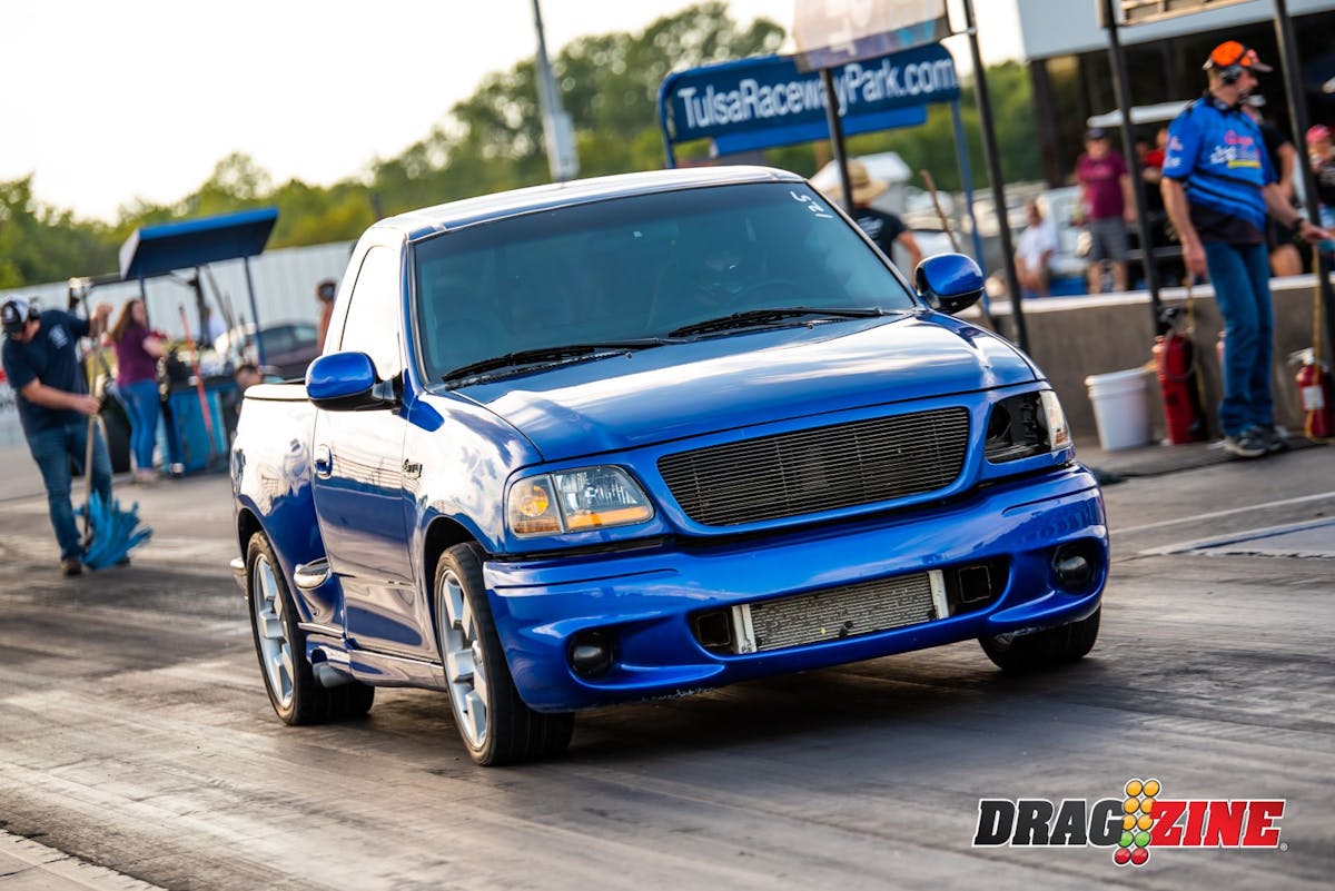 Daniel Pharris drove his sleek 1995 Ford Mustang Cobra to the top spot on a quick day of Street Outlaw qualifying, as he outpaced Shawn Ayers and Rob Goss with the only ‘twenty’ — a 4.281 at 173.09 mph in the third and final session. Shawn Ayers, well on his way into the 20s in the final session before slowing, closed out qualifying second at 4.30, with Friday’s leader, Rob Goss, third at 4.32.