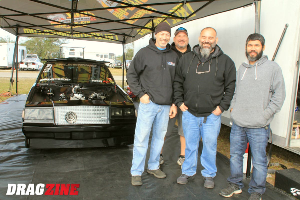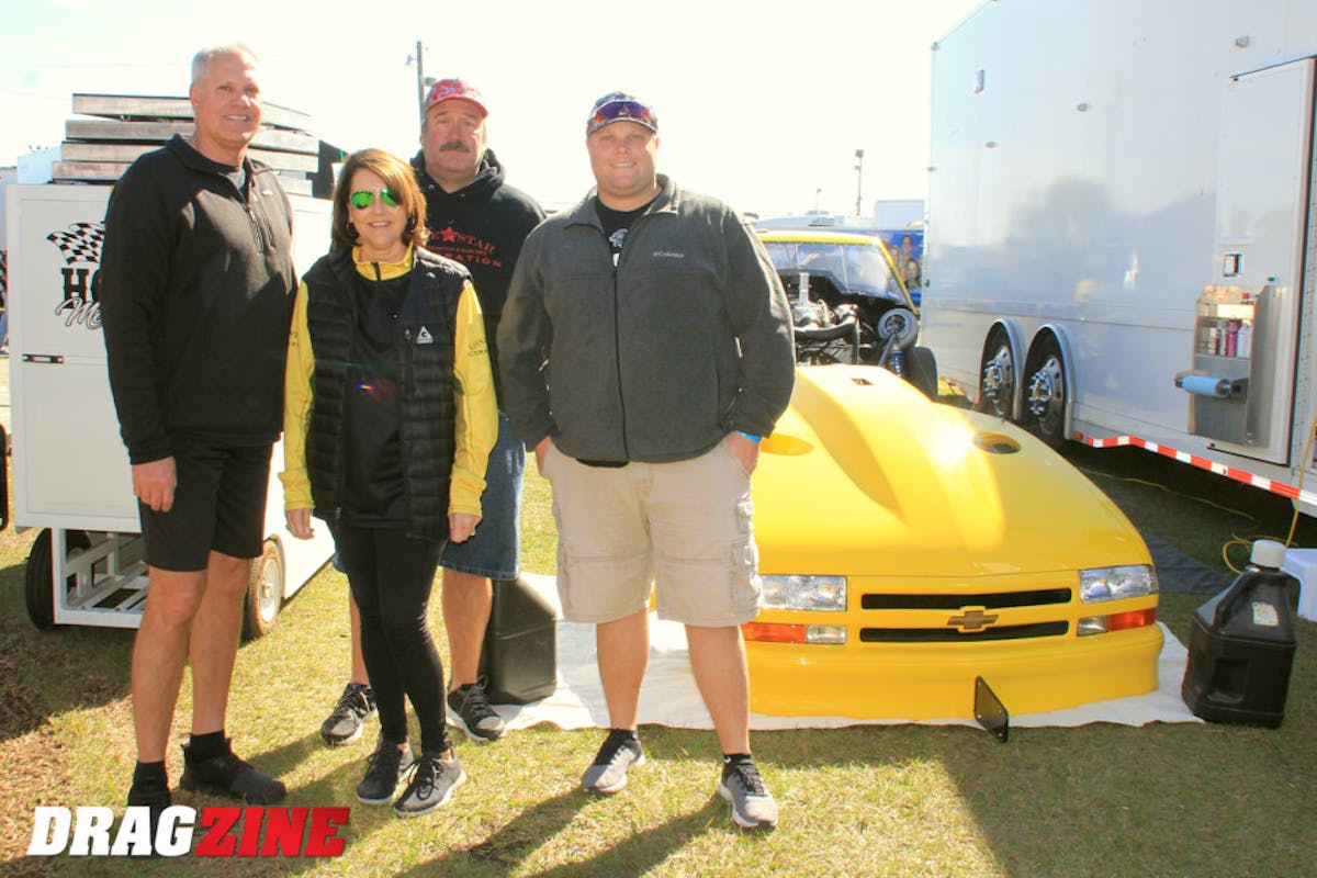 Ronnie Hobbs own this fabulous S-10 based out of Texas that was formerly campaigned by Jeg’s in Pro Stock Truck. It’s been completely redone with double frame rails by Brink Racecraft and will be campaigned in various No Prep events and perhaps a few other random events. This is the debut weekend for the truck with Ronnie scoring a 4.66 at 132 on the first full run with the team only testing 60′ and half track runs before today. The truck is powered by a twin turbo BAE Hemi freshened and maintained by Pro Line Racing. Hobb’s owned the Texas Rattlesnake Pro Mod winning two Dirty South No Prep events with Steve Wylie driving winning both. The car was promptly banned from competition prompting Hobbs to build this now street legal, tagged, insured S-10. “ We thought about running a Pro Mod series with the 53 but don’t want to be tied down to run a series, we want to be able to pick and choose where we run and have a flexible schedule. Bounty Hunters is our first No Prep event on March 8.” – Ronnie Hobbs From left to right; Ronnie Hobbs, Mar Barum, Seth McCann, and Landon Hobbs