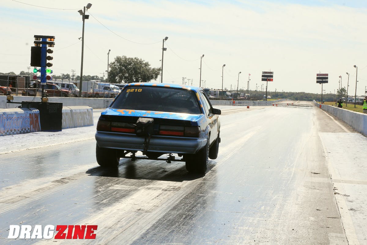 Don Cruz has been away from the racing scene a few years and now that his son has moved on to college he can spend some more time away from home. Cruz Performance specializes in Buick GN and V6 performance with his shop based out of Tampa, Florida for about three years after being in automotive electronics and new car dealer accesories for twenty five years prior to that. Cruz has been racing and building engines for nearly twenty years, finally moving in the performance industry recently. The engine sports two hundred seventy four inches and is boosted by an old school Precision GT47/88 turbo and topped with Champion Racing Heads and intake manifold, which are based on a production style heads making around sixteen hundred horsepower running in the 4.8X range. Cruz recently picked up a transmission from RPM and is very pleased as the reliability has allowed his to focus on tuning the car and getting data, not fixing it. He is using a PTC converter and will be making changes to that based on recent data. He sits fifth in class with a 4.88 at 140.