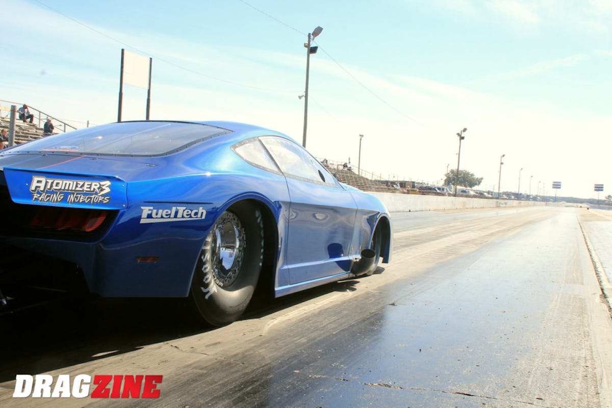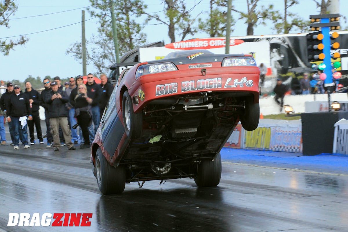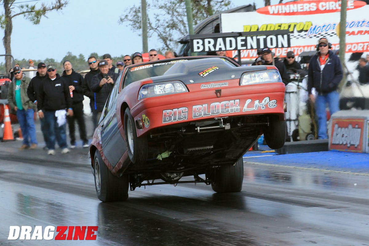 Paolo Giust has both his cars here this weekend with Black Betty entered in RVW and earning her “stripes” last night after getting cozy with the right side wall. The crew fixed her up and he sits in 21st spot in the 32 car/all run field of twenty two cars in class this weekend, the most we have had in the class here at Bradenton.Archie Marasco (shown at left) and team Real Speed Racing were bust at the shop yesterday and we not able to make the qualifying session yesterday due to the change in scheduling. Walter made some adjustements to the tune up for the second round today putting him ninth of fourteen cars with a 4.91 at 141.Fast Forward Race Engines Ultra Street was on fire this morning with several cars riding out wheel stands. Here Joel Greathouse takes over top qualifier with a 4.626 at 152. A record setting pass in Ultra.