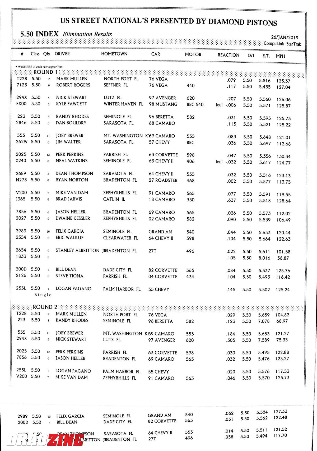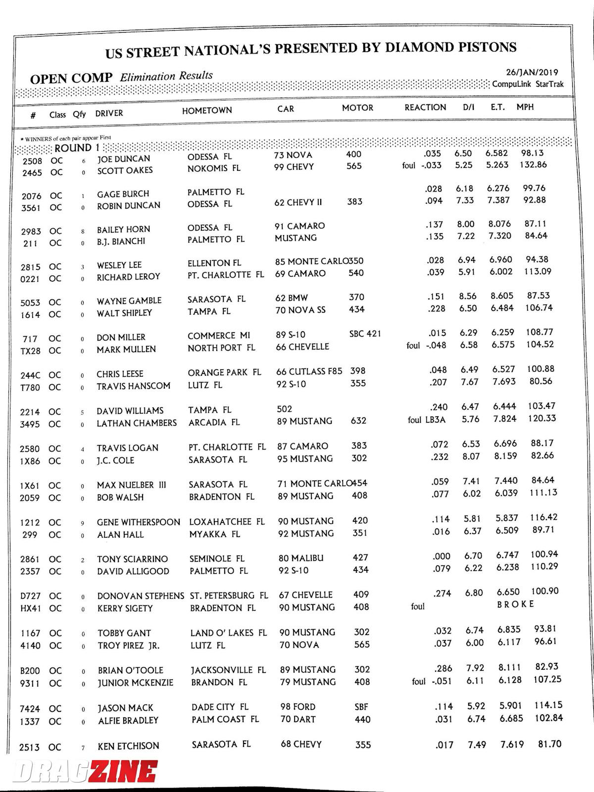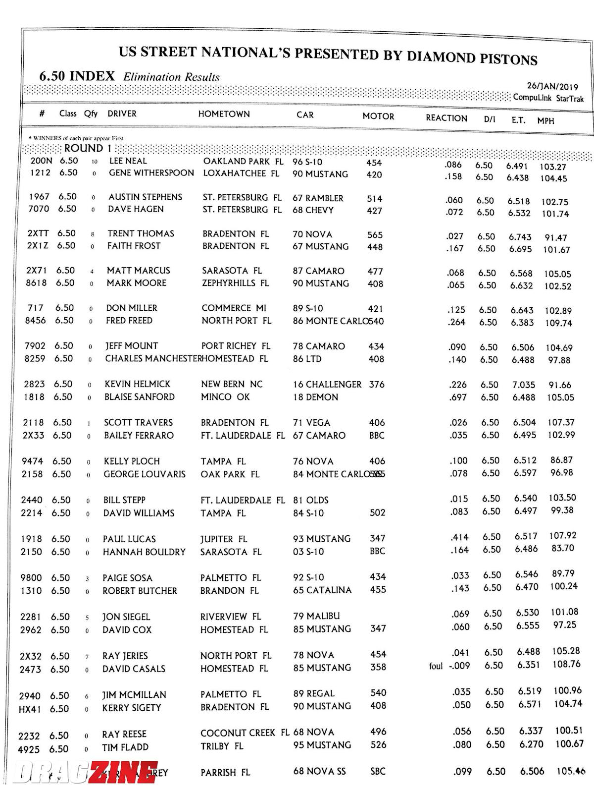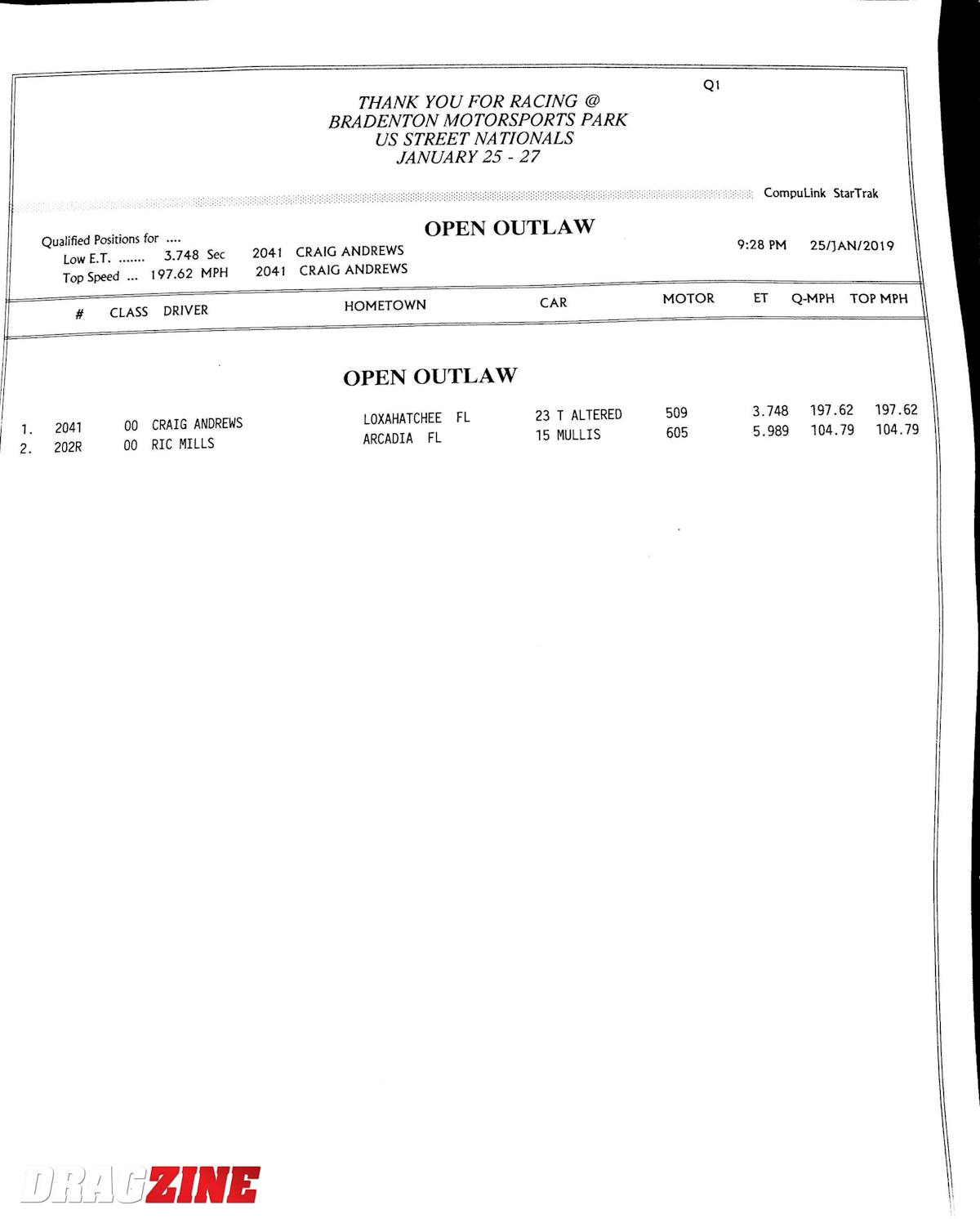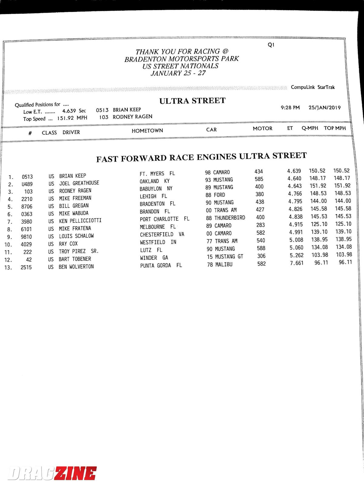 The 2019 season kicks off this weekend under the sunny skies and amazing weather conditions here in Bradenton, Florida at the U.S. Street Nationals. This morning the corrected altitude was right at negative 500 feet — mine shaft conditions ripe for record-setting. There are several new cars and teams here and we will get you caught up on during the weekend so stay tuned for the latest news from the track and behind the scenes as we get the 2019 season started with a bang!