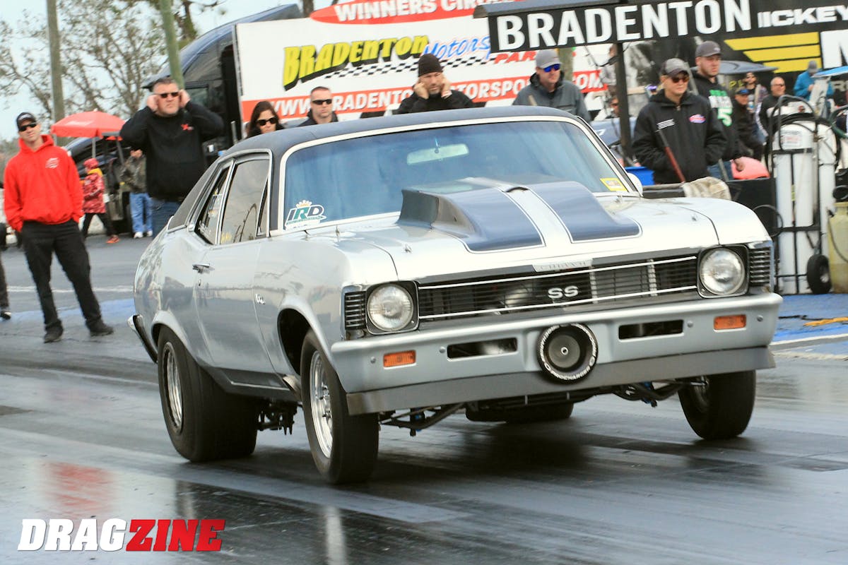 Newcomer to Heavy Street is Job Bitler running his 1969 Nova this weekend in his first class appearance. He drove the car to high school back in the day and it slowly progressed to it's current set up, a Scotty's Racing Technology 565 cubic inch Chevy topped with Edelbrock Victor heads and force fed by an F1X-12 Procharger though a blow through carburetor from IRD Racing, Jon's own company. He also works at Induction Solutions though has eschewed nitrous use on his Nova taking almost two years to make the switch. The car sits on Cal Track split mono leaf springs with and a Smith Racecraft bolt on front subframe. Jon tested the car here a couple of weeks ago with promising results getting into the 4.7 range with improvements to the sixty foot and getting the car to work better leaving the starting line. He sit's in second spot with a 4.67 at 159, top MPH for the class.