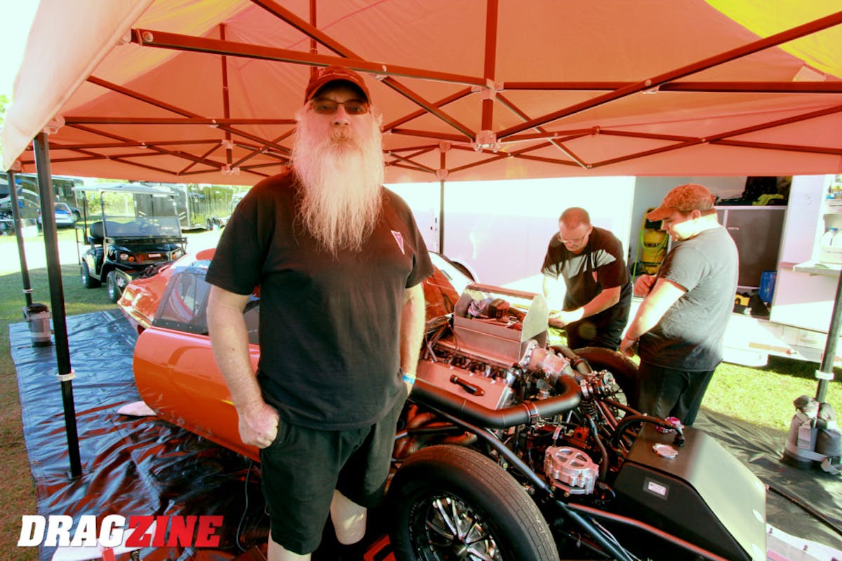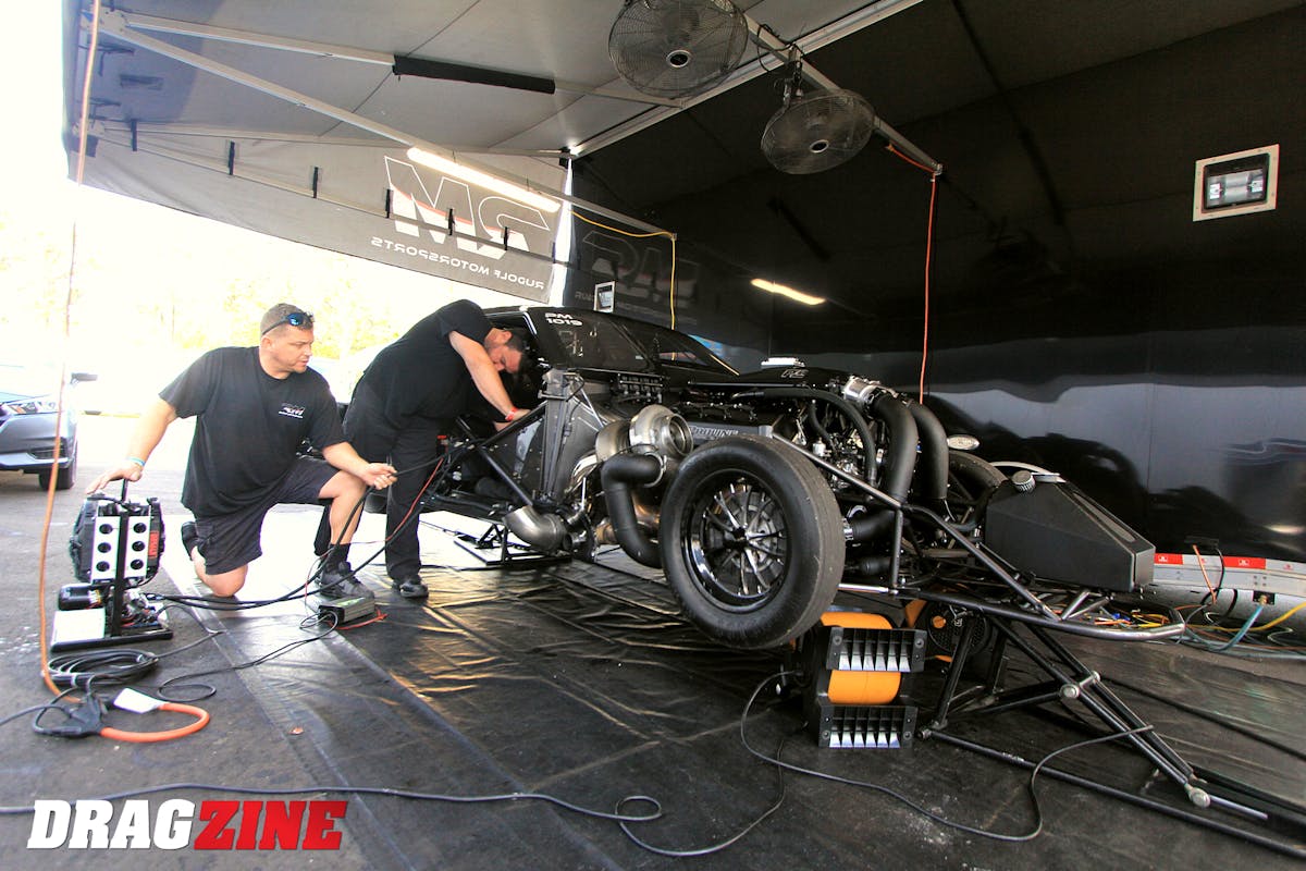 Tommy Youmans from McIntyre, Georgia owns this stunning 1970 GTO entered in Pro 275. The car debuted at SGMP’s No Mercy last year where Youmans has an unfortunate incident with the wall and was just completed with repairs and fired up last week. It features a 505 cubic inch Pontiac engine with Kauffman billet block and cast Warp 6 War Chief heads making 3.350 RWHP on the hub dyno at Fuel Tech. He is qualified so far with a 4.10 at 181 MPH with plenty of power left to go and is looking to break into the threes here this weekend. The car was built using replacement body panels from National Parts Depot and fiberglass from VFN with Youmans melding the fenders and hood into a one piece lift off assembly, Tom Dobson and Mod Rods in Macon, Georgia.