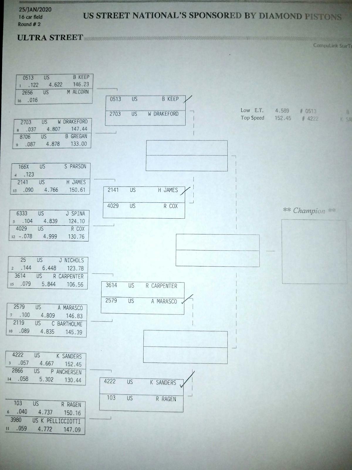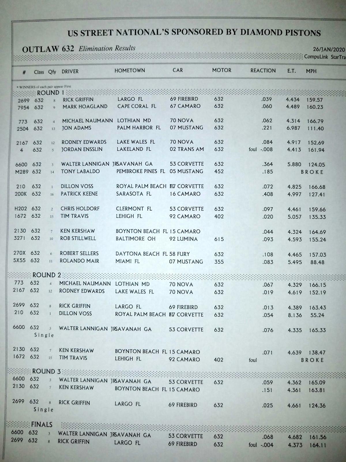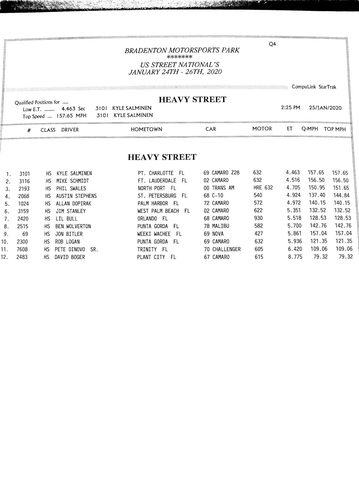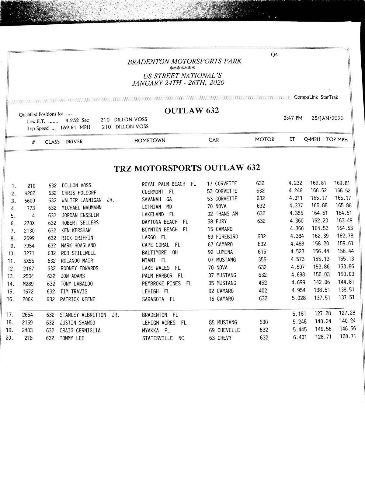 It’s another fine day in Florida for racing as we move to the final day of the 2020 US Street Nationals in Bradenton. We get started this morning with Open Comp and Jr. Dragsters before moving to the Index classes and heads up racing towards 11 AM.