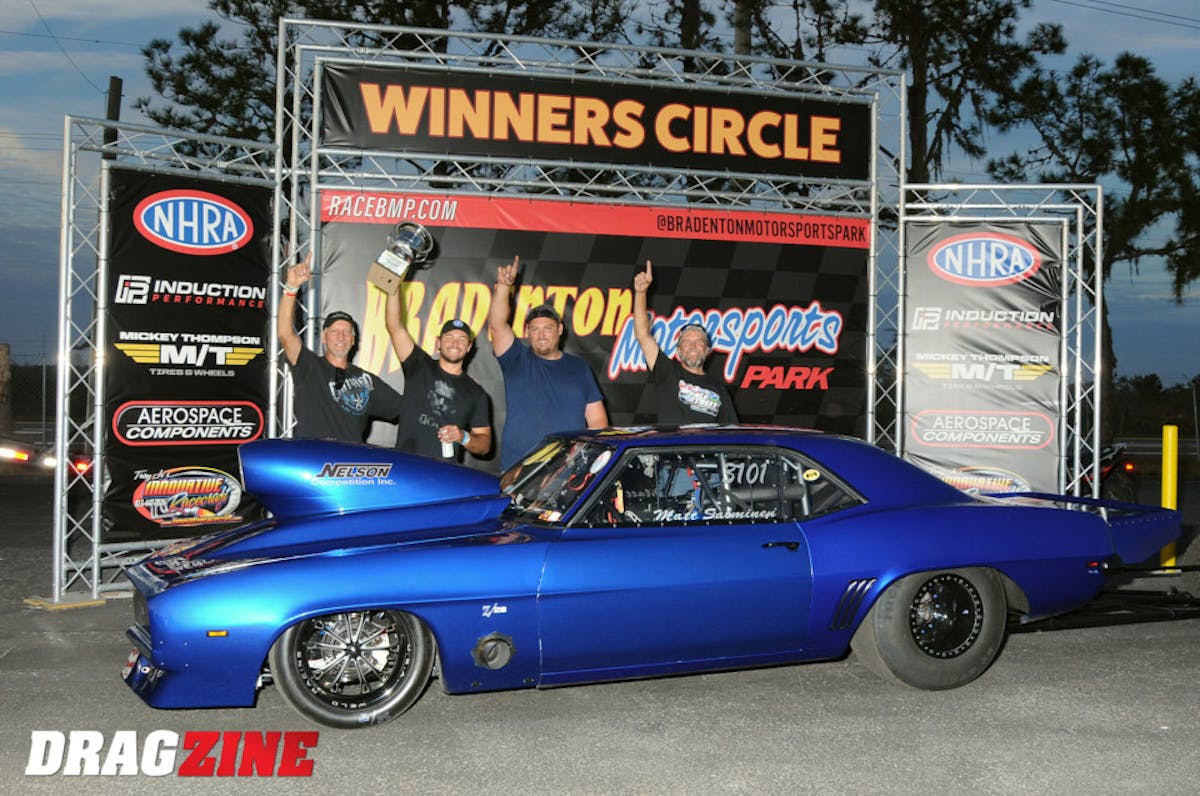 “Those guys have a top notch program, I’m glad to be part of it, Billy is doing a good job tuning the car, Robert and Jack are doing a good job keeping it bolted together and I don’t know of a better way to start a season off than an all team mate final” Jimmy Bradshaw, Tyler Crossnoe and the Bradenton staff had the track on kill and worked very hard all weekend to keep it that way and the performance of the cars, not just in this class, speaks volumes for track owner Victor Alvarez and his commitment to improving the facility, and the sport, as as one of Drag Illustrated’s picks for 30 under 30 2019. Winner circle photo courtesy BME Photography.