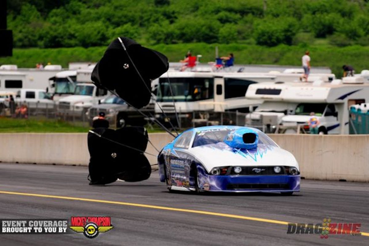 Friday qualifying ended after Top Sportsman finished their 3rd session and Pro Mod completed one pair due to rain. Therefore, the Pro Mod session won’t count, as the class did not complete the session. Jeff Naiser was temporarily #1, but the run won’t count. All classes will get their final qaulifying round Saturday starting at noon. We will follow a normal Saturday schedule.
