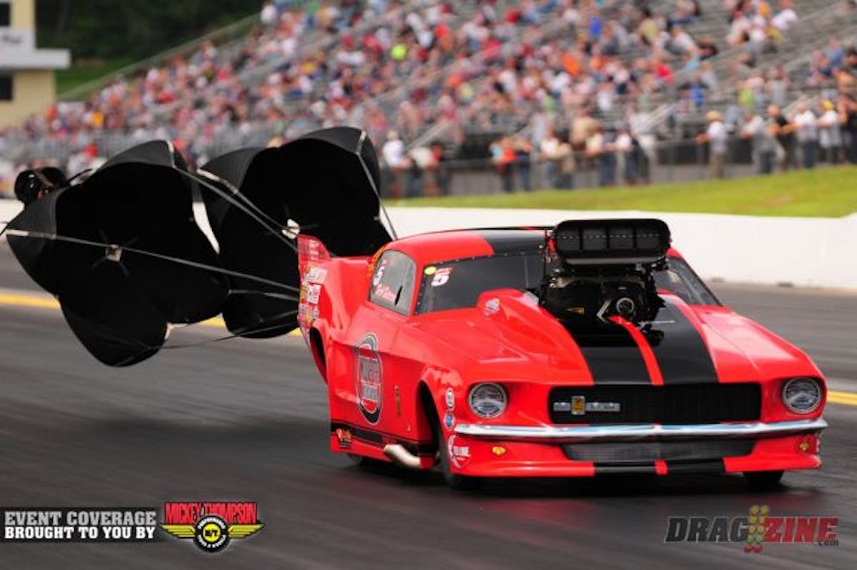 Jeff Naiser hangs the chute and sits #2 in Pro Mod after Q3 with a best of 3.893/191.46 He meets Pete Farber and his 1969 Daytona in round 1 competion