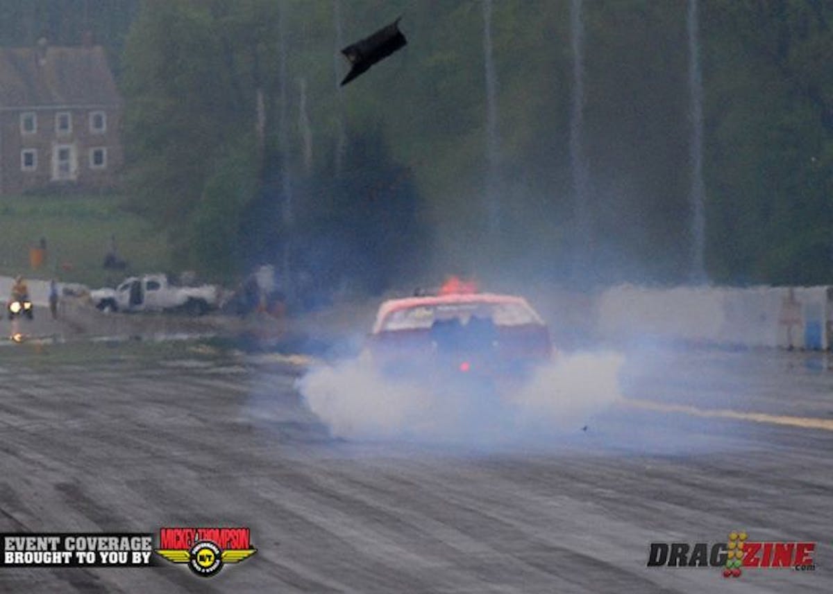 Ed Burnley shoots out flames and shuts off during Pro Nitrous qualifying round one.