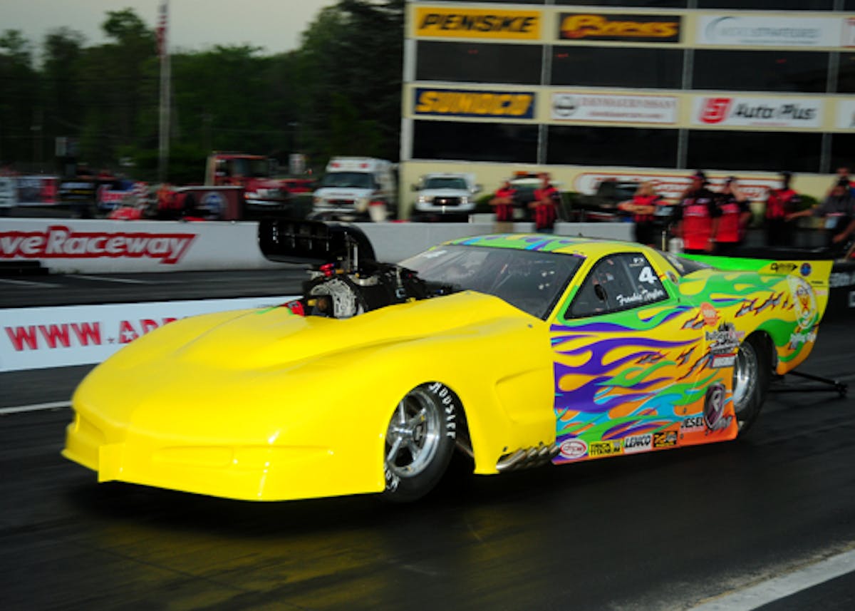 Frankie Taylor made the first full run of the season in Q2 and led Pro Extreme with his 3.653/207.85 The reason for the yellow nose is due to the cutout to fit the blower.