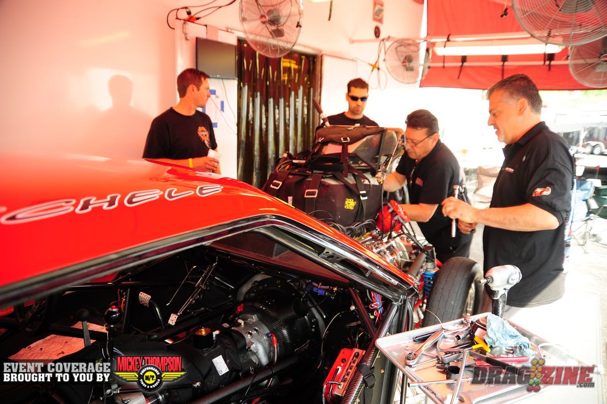 Mad Mike Recchia and crew ready for the final session of qualifying for Pro Extreme. Unfortunately his best effort in Q4 wasn't enough to make the field. "The hemi engine we're using this year is a whole new animal compared to the wedge of 2011.