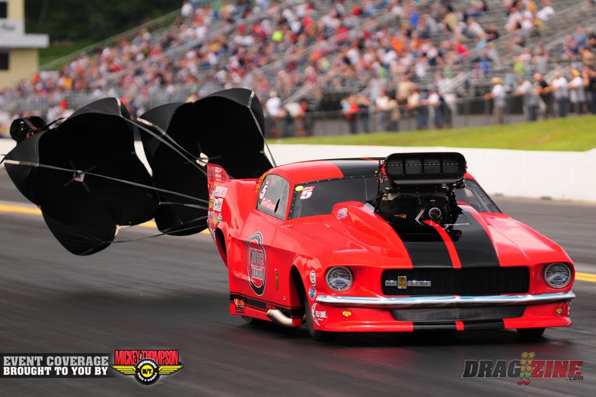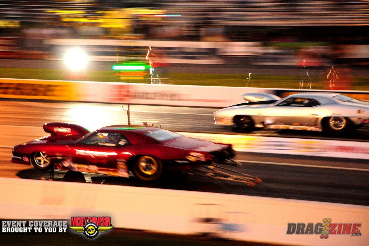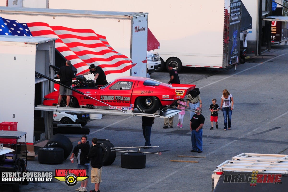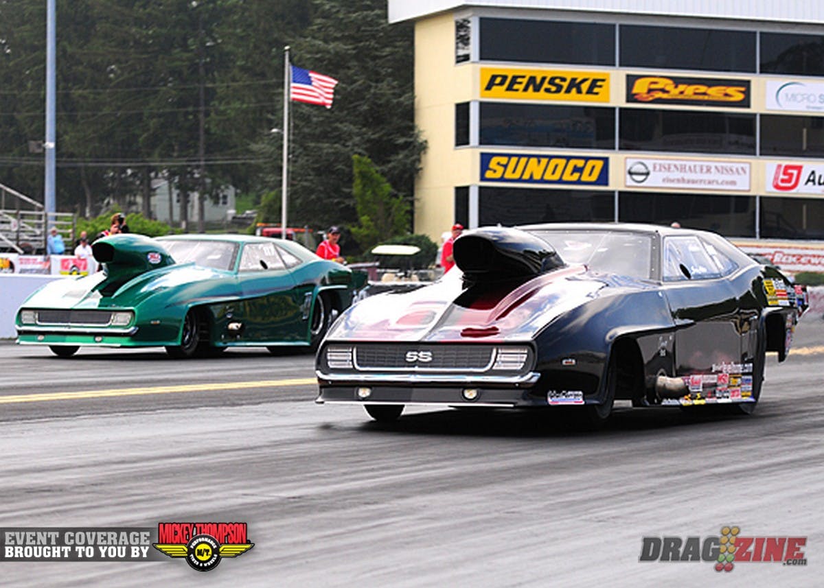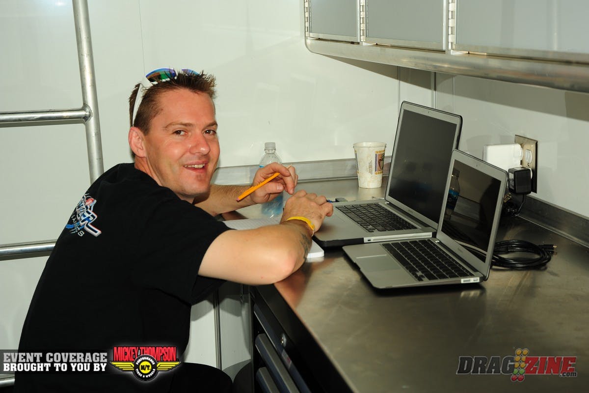 Friday qualifying ended after Top Sportsman finished their 3rd session and Pro Mod completed one pair due to rain. Therefore, the Pro Mod session won’t count, as the class did not complete the session. Jeff Naiser was temporarily #1, but the run won’t count. All classes will get their final qaulifying round Saturday starting at noon. We will follow a normal Saturday schedule.