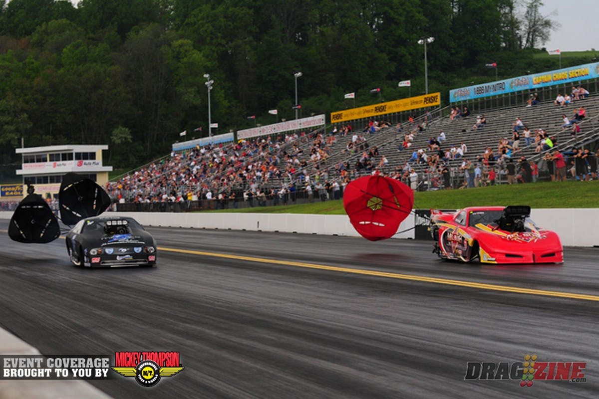 Pat Musi and Rickie Smith purge their nitrous systems before Q2. Musi is currently No.3 and Smith sits No. 7 in the Pro Mod field.