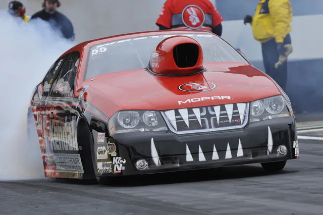 Pro Stock points leader Allen Johnson and his Team Mopar/ J&J Racing Dodge Avenger was eliminated in the second round with a red-light start, but the Tennessee driver left the event with an 82-point lead over defending world champ Line.