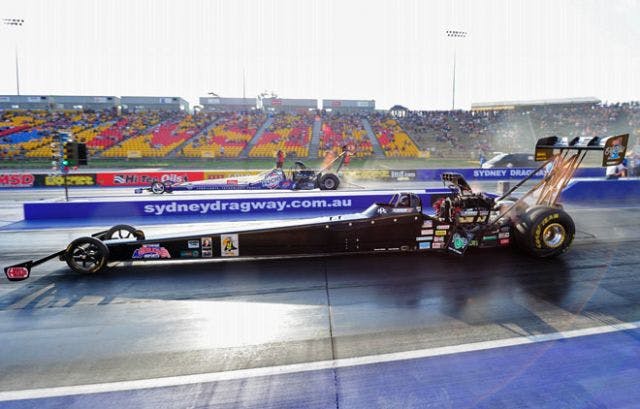 Reigning Australian Top Fuel champion Darren Morgan took his second win in a row, backing up his victory in Adelaide two weeks ago. Renewed consistency saw Morgan able to drive to a 4.78 win in the final, also recording top speed of the event at 513kmh, defeating Phil Lamattina’s valiant 5.00 in the second finals confrontation in a row for the pair.