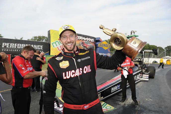 Lucas picked up his first U.S. Nationals victory with a final round performance of 3.864 at 319.90 in his Lucas Oil dragster to defeat Dave Connolly. The win was Lucas’ first of the season and 12th of his career. He defeated Leah Pritchett, teammate Richie Crampton and Brittany Force to reach the final. It is the second straight U.S. Nationals victory for Morgan Lucas Racing after Crampton’s win last season.