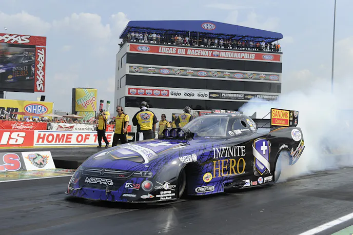 Beckman defeated three-time Indianapolis winner Robert Hight in the final with a reaction time advantage victory. Beckman ran his Infinite Hero Foundation Dodge Charger R/T to a 4.058-second pass at 310.77 mph while Hight ran a quicker 4.045 at 309.77 in his Auto Club Chevy Camaro SS. Despite running the slower time, Beckman had a superior 0.034 reaction time advantage to Hight’s 0.034 which helped him take the victory. It was his sixth win of the season, 21st of his career and first at Lucas Oil Raceway at Indianapolis.