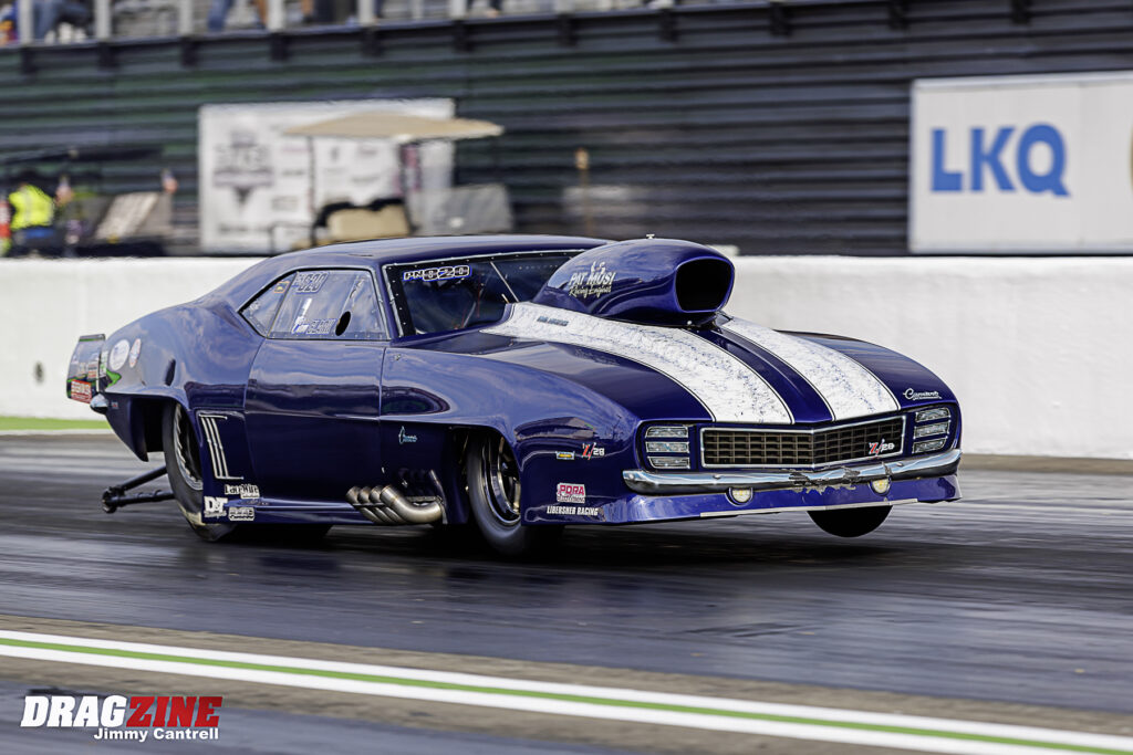 A healthy 24-car field of the baddest Pro Mods rolled into Darana Motorsports Park – Dunn looking to take home the $50,000 payday. Claiming the top spot was Ed Marx with a 3.568 at 210.41 mph. Making his Pro Mod debut, Ethan Steding qualified in the 12th spot and worked his way through the field on his way to his first Pro Mod final. Kevin McCurdy, handling driving duties in Eric Gustafson’s Camaro, qualified fifteenth and joined Steding in the finals. Steding had a slight reaction-time advantage over McCurdy and carried that lead all the way to the finish line to earn his first Pro Mod win.